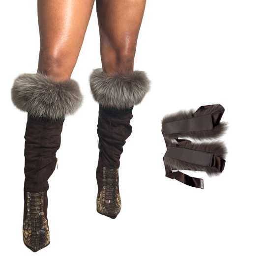 Shoe Slutz brown fur anklet (short ribbon)