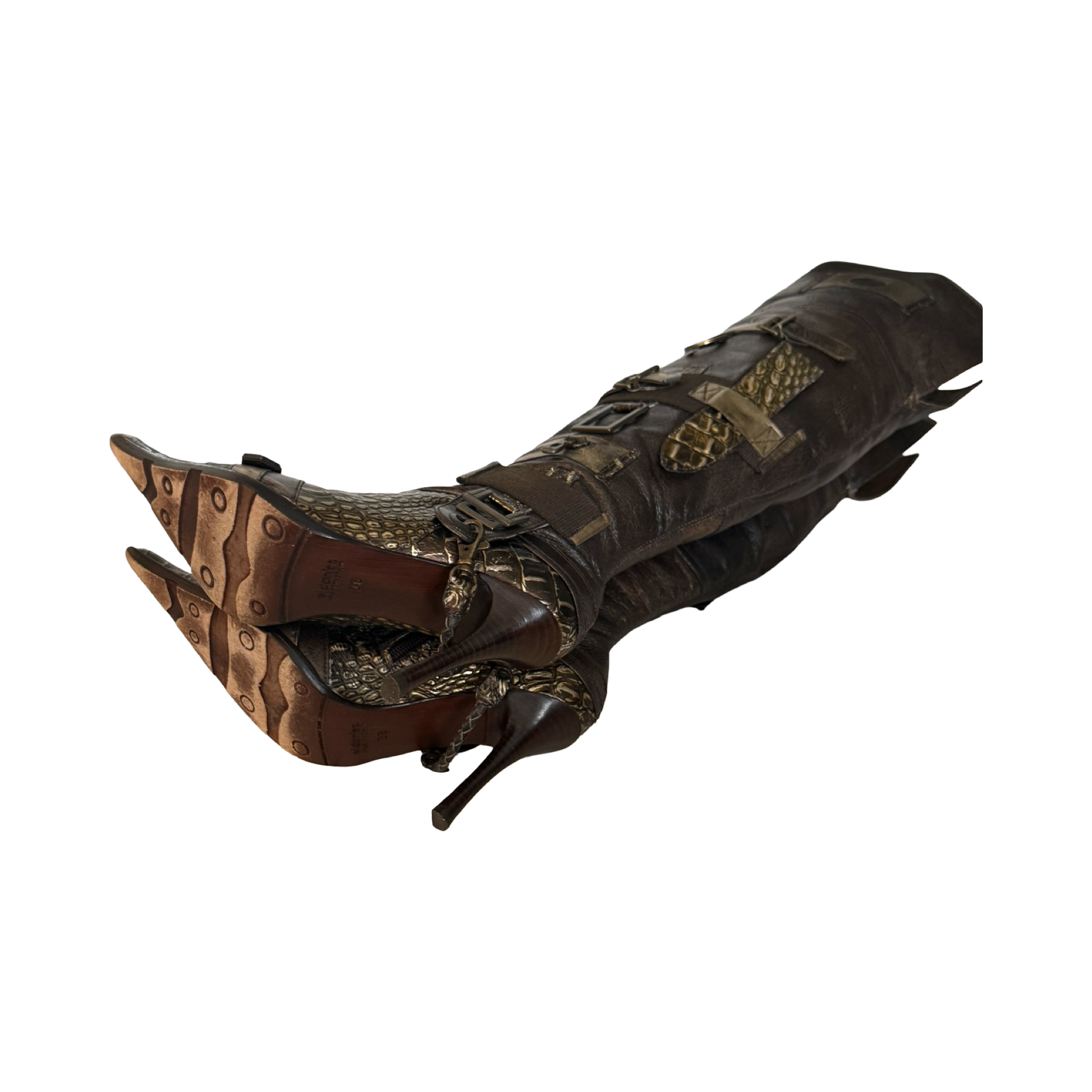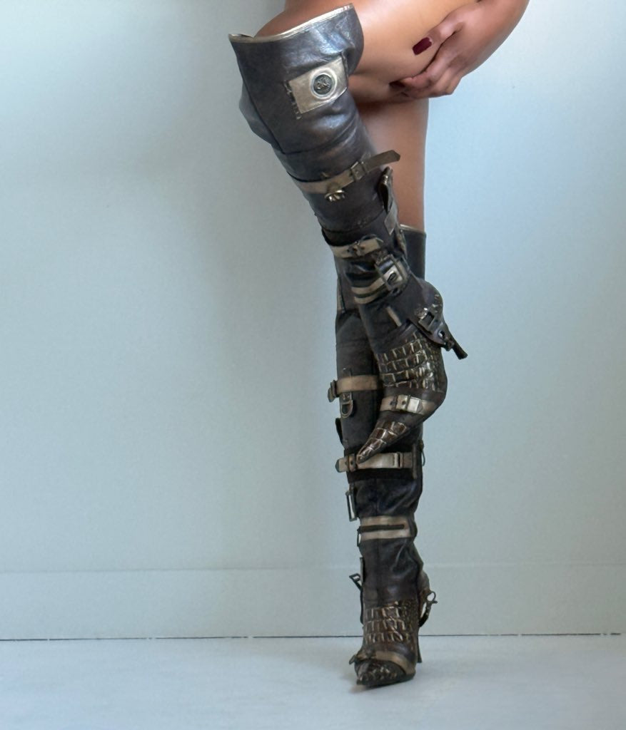 El Dantes bronze steampunk over the knee boots 4inch heel 14 inch calf circumference.