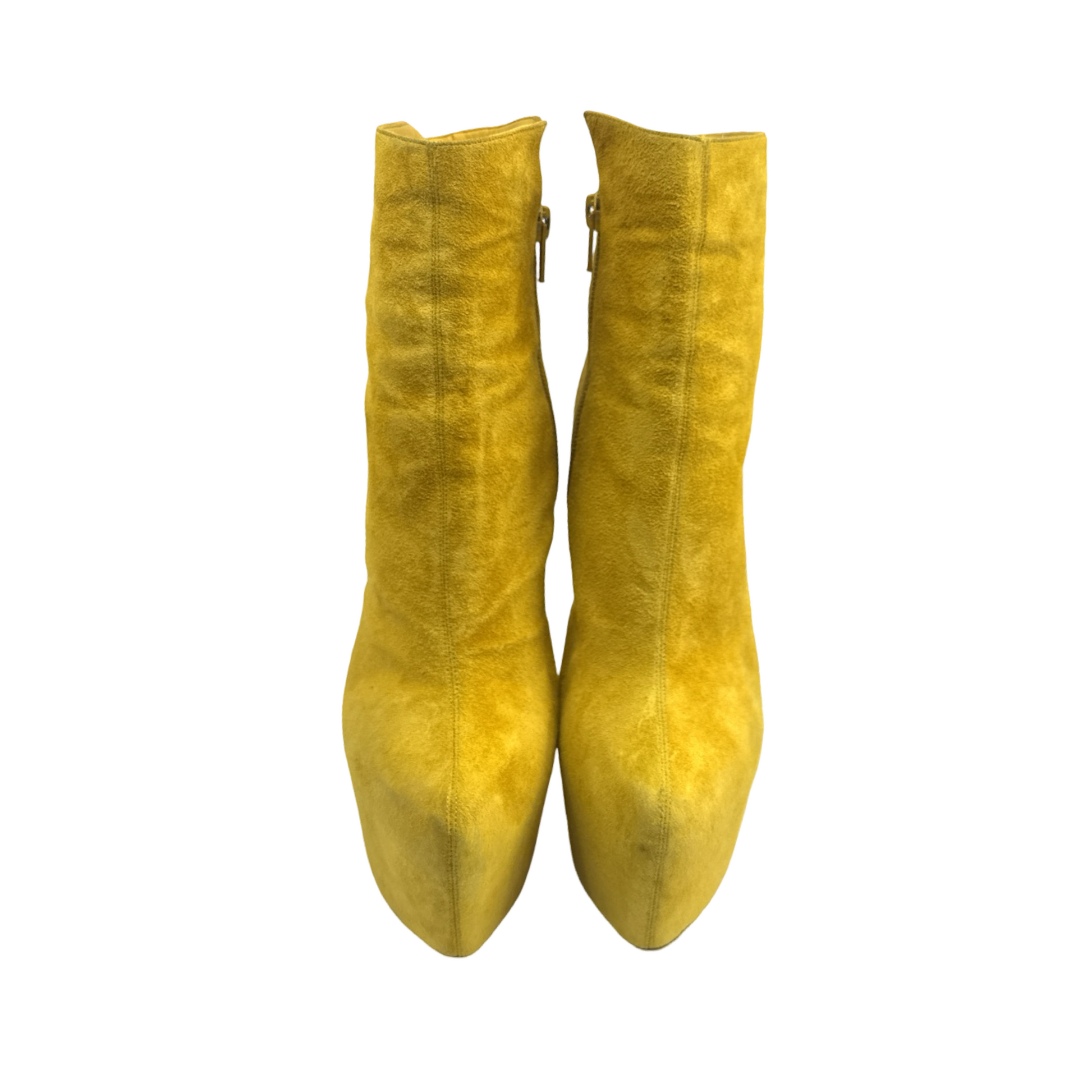Christian Louboutin mustard yellow suede Daffodil booties. Resoled in good gently used condition. 6inch heel.