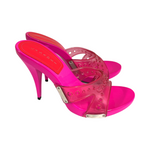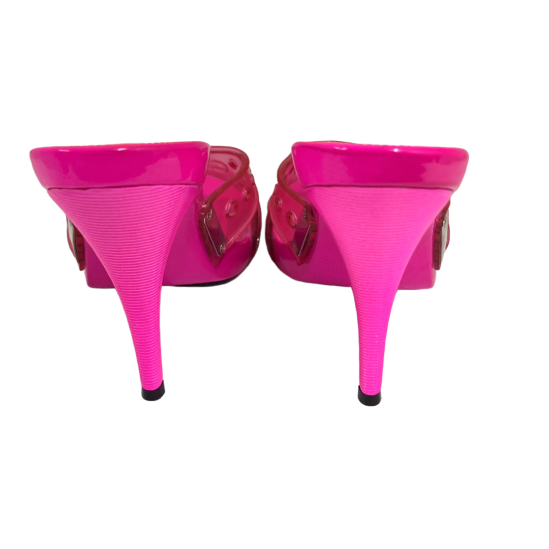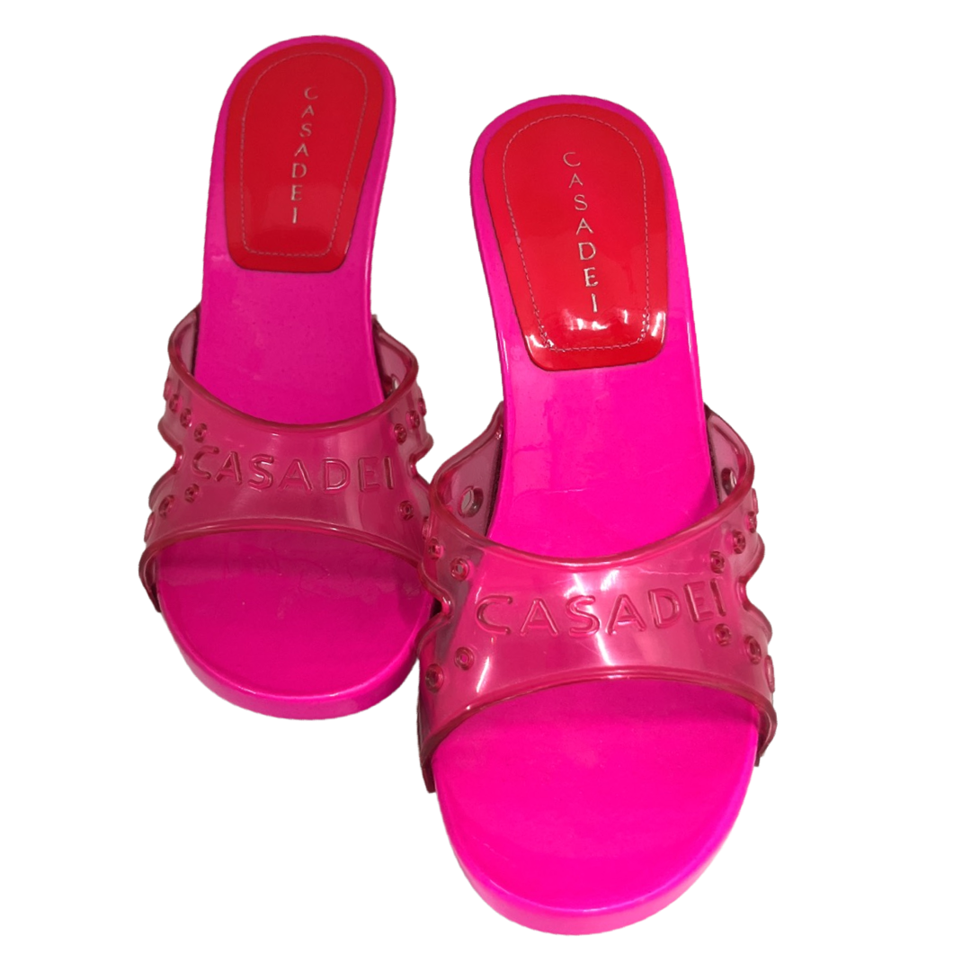 Casadei Barbie pink pink rubber sandal with coated wooden feel and logo detail.