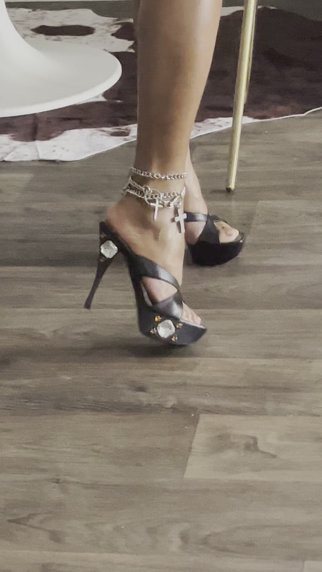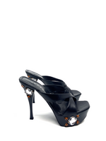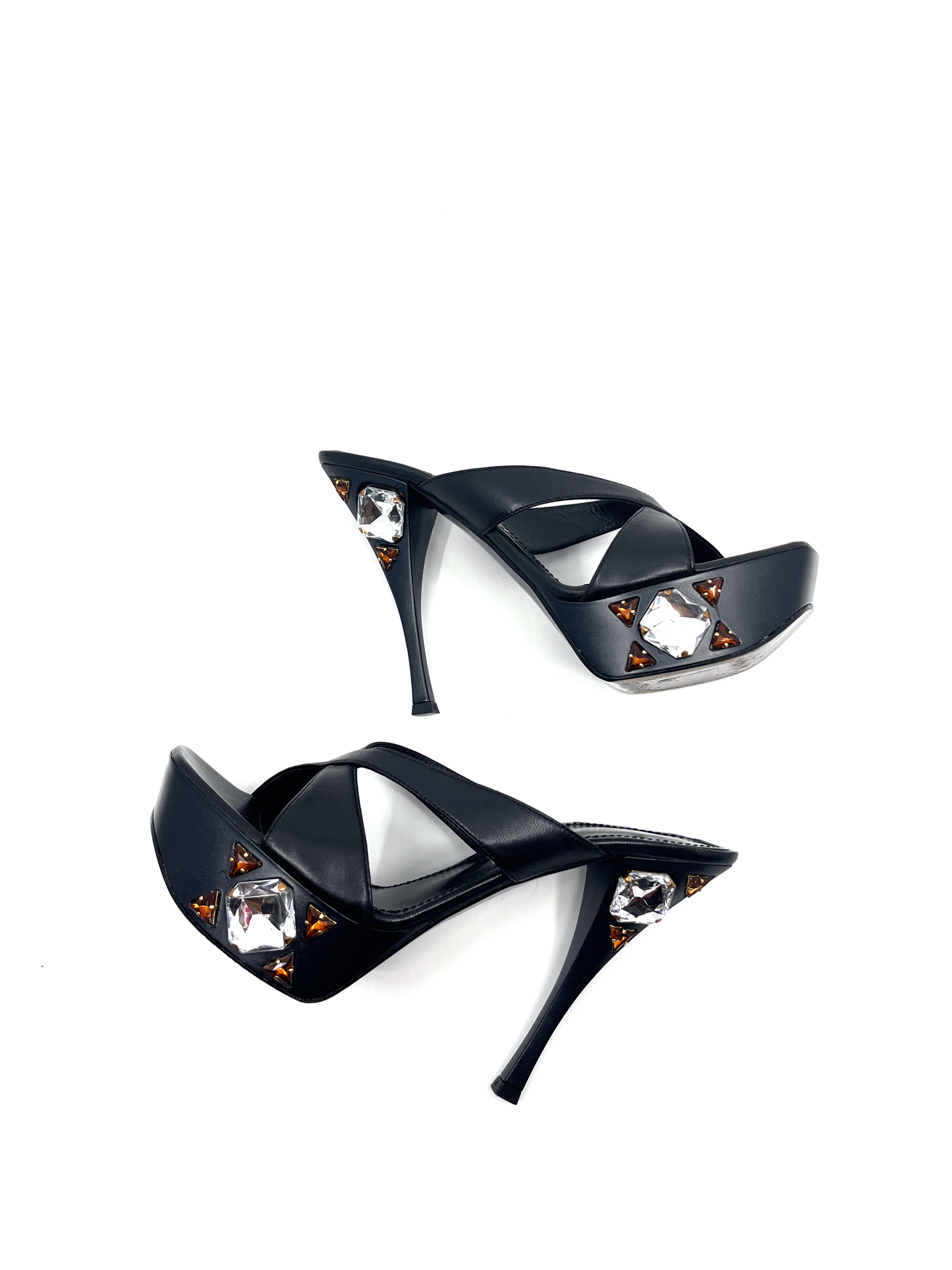 Casadei platform black leather criss cross sandal with jewels. 5inch heel.