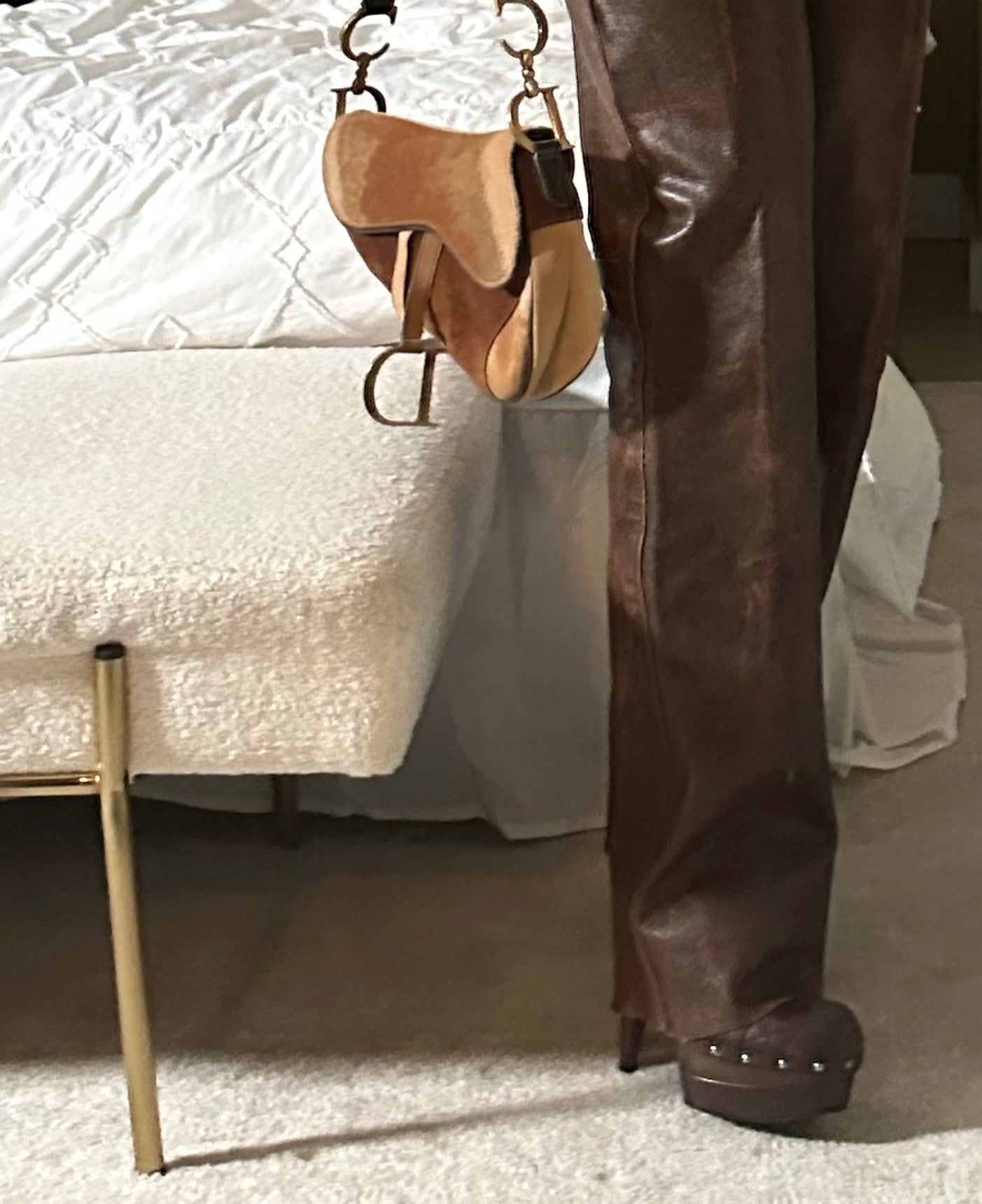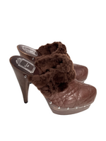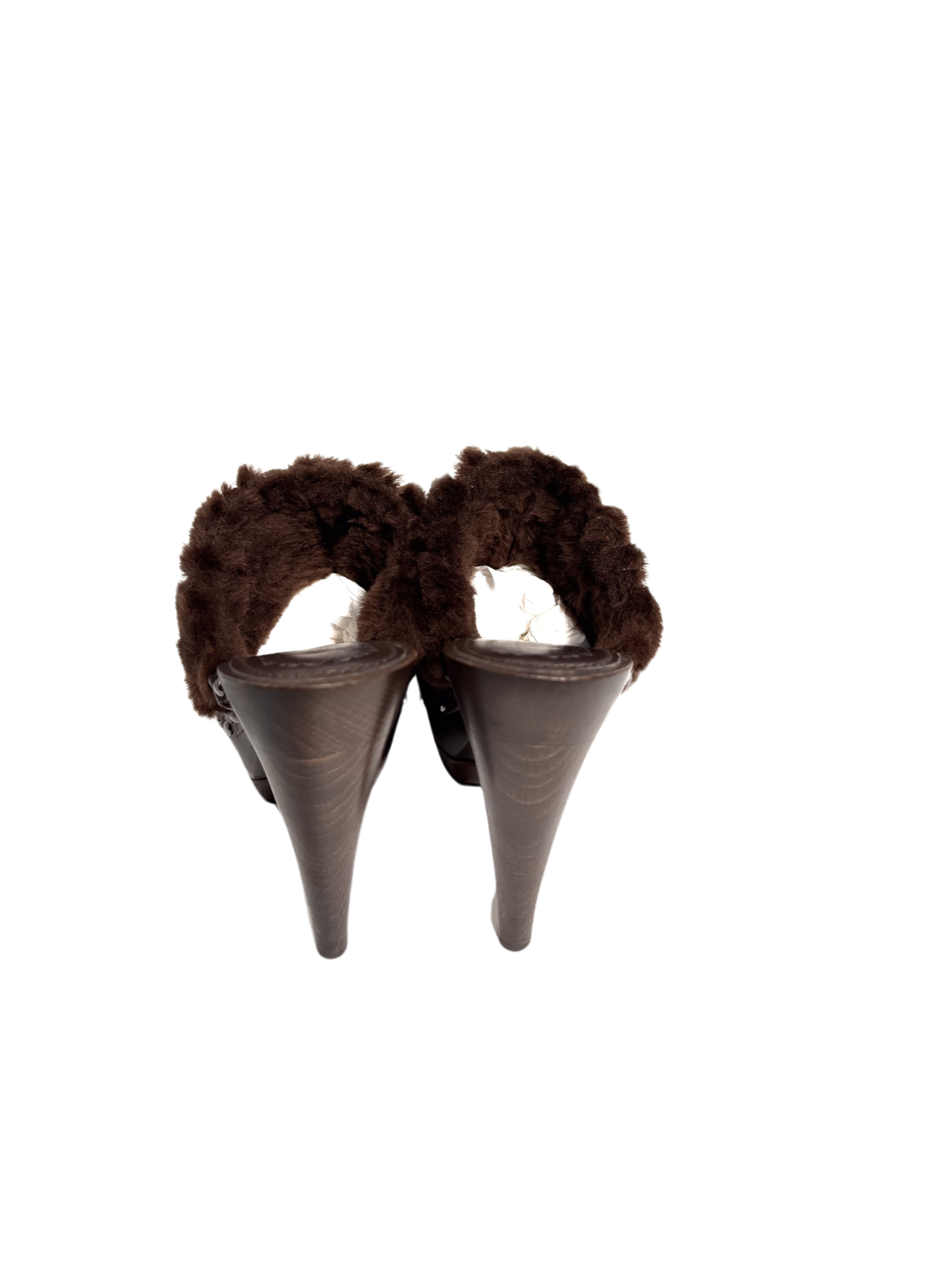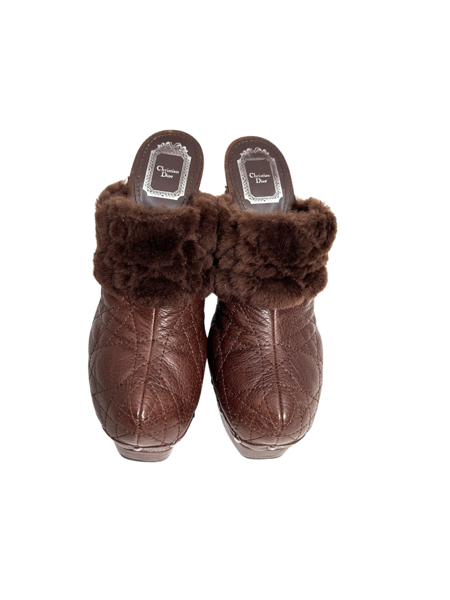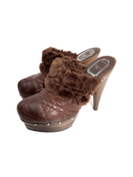 Dior brown leather quilted clogs with fur trimming. In excellent condition. The heel is 6inches tall a d the front platform is 2inches.