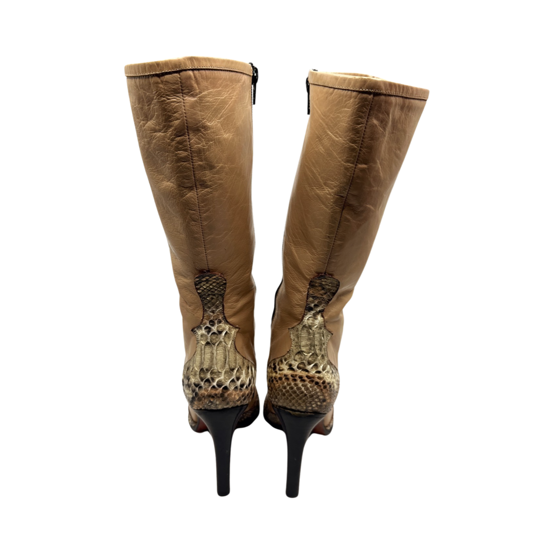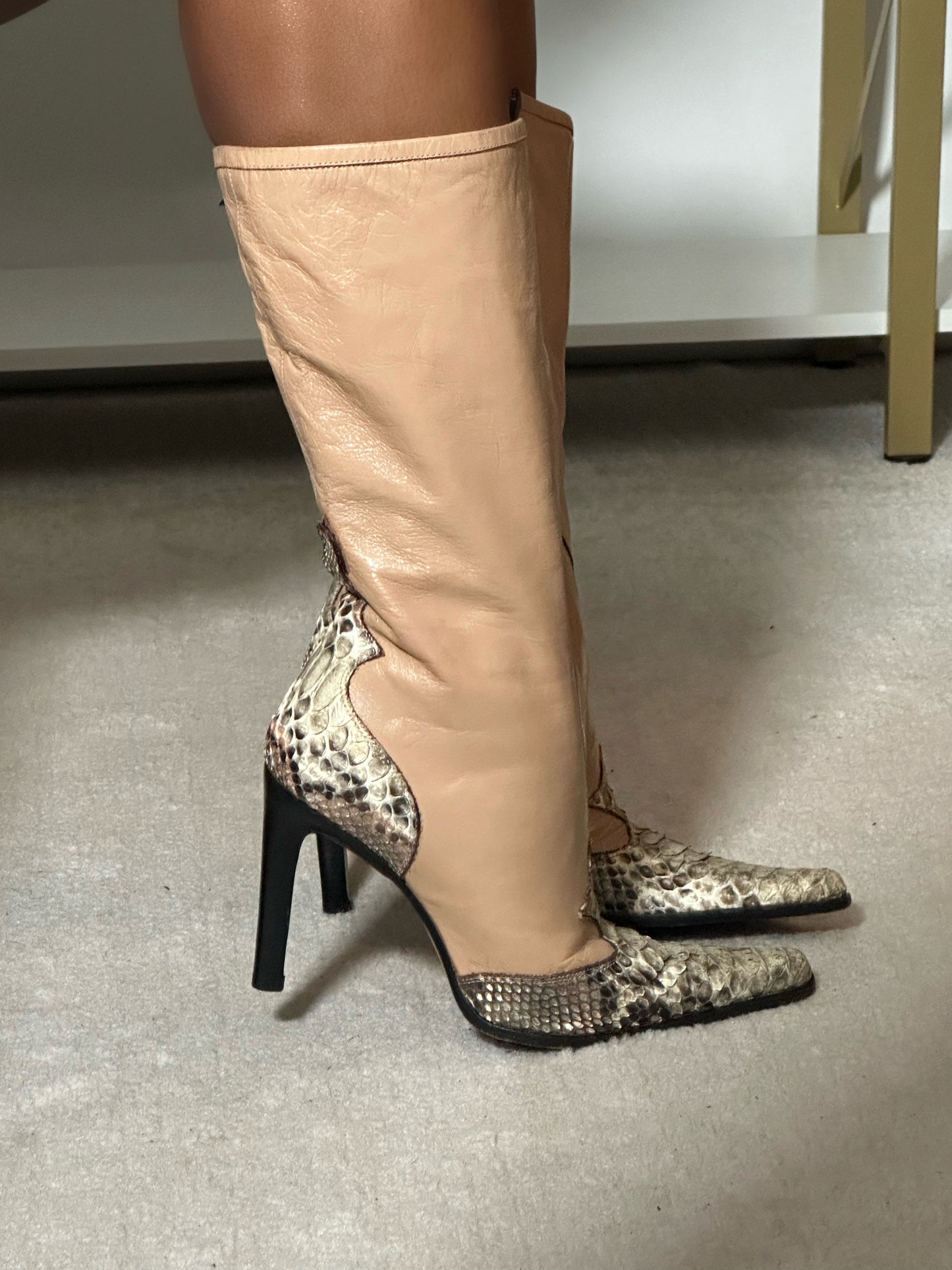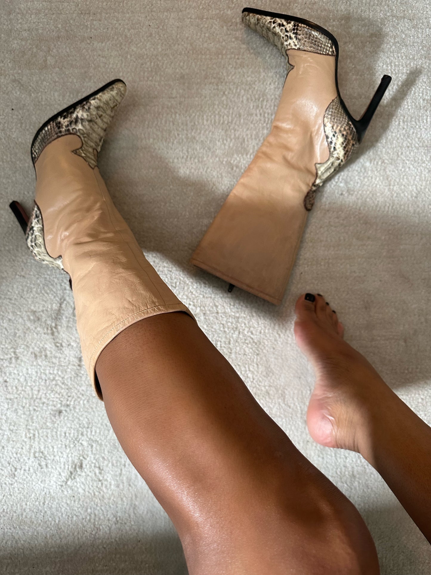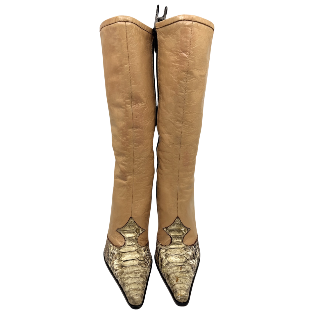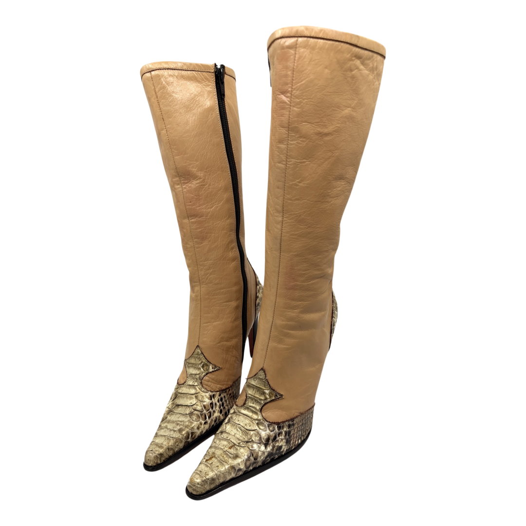Vintage Italian bronze python and leather western style booties. In great condition. * 4 inch heel