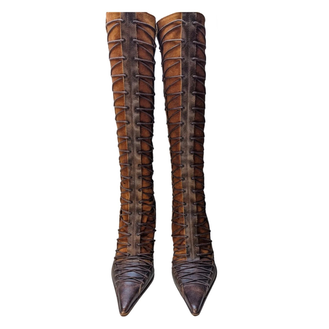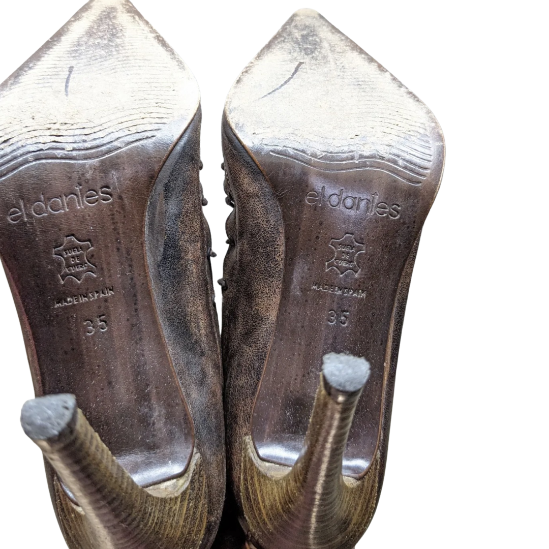 El Dantes brown Victorian laceup leather and suede boot. Slight wear at toe and sole *see pictures not obvious on.
