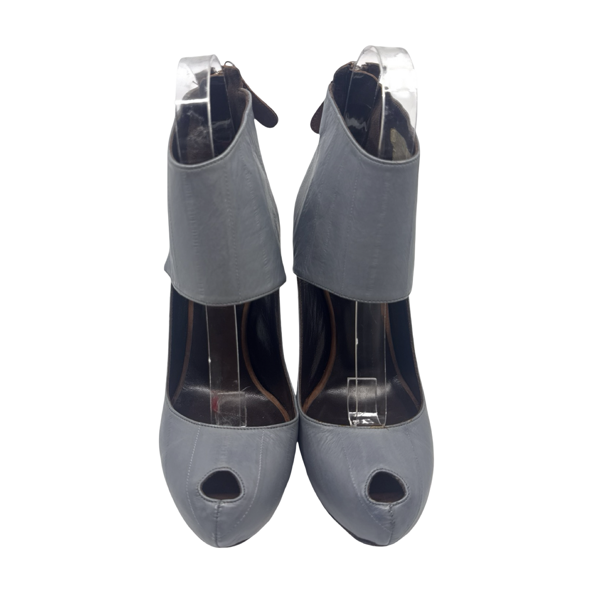 Emanuel Ungaro runway eel skin ankle brand booties. In excellent gently used condition. * Look great styled with Shoe Slutz brown fur long ribbon anklet, sold separately.