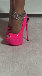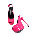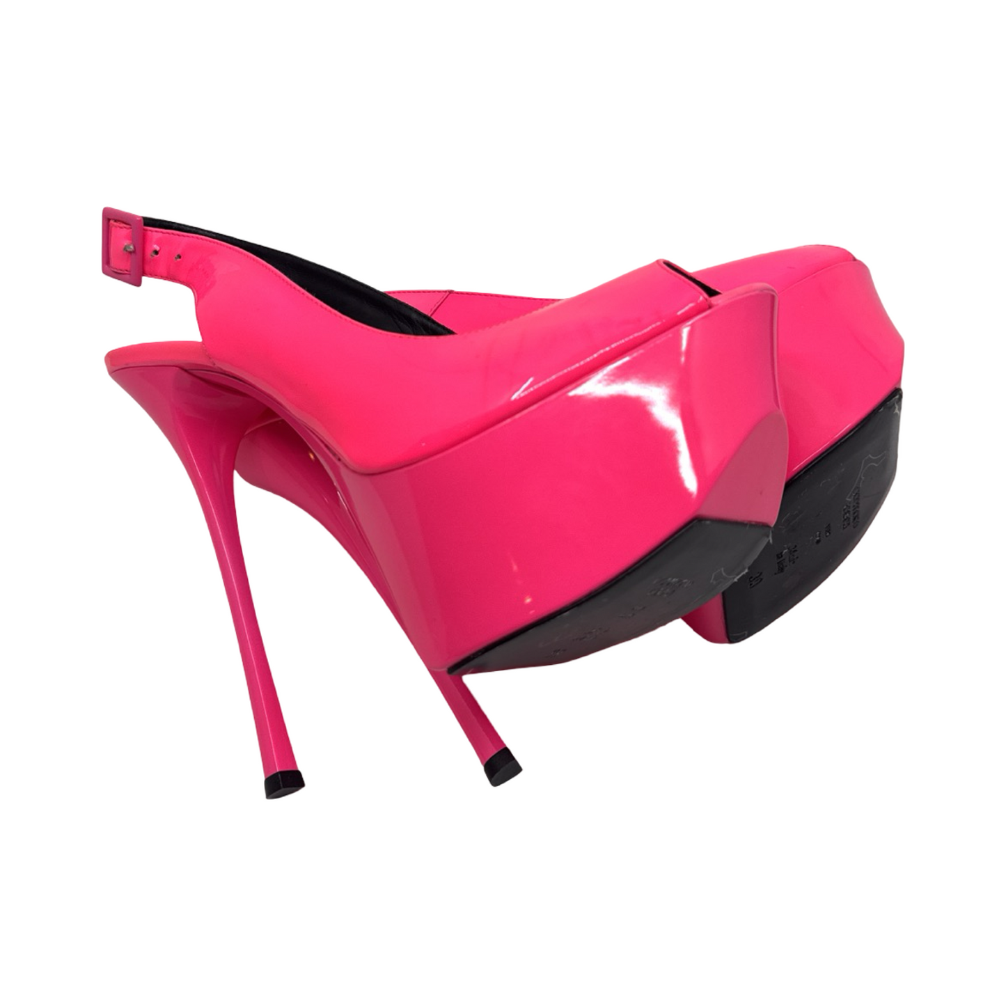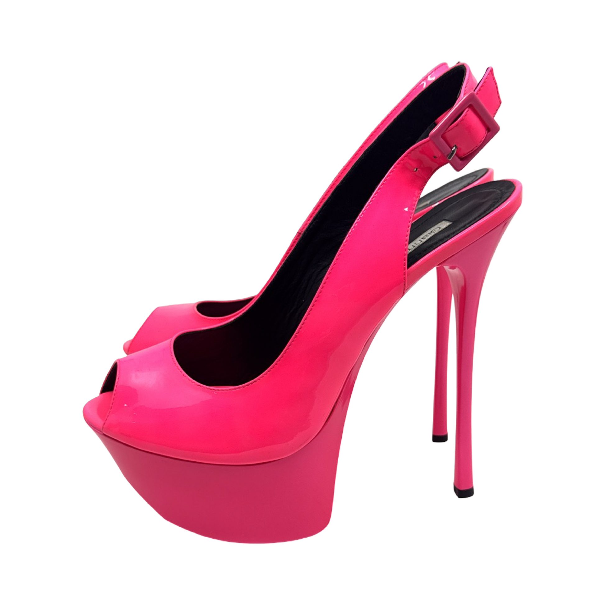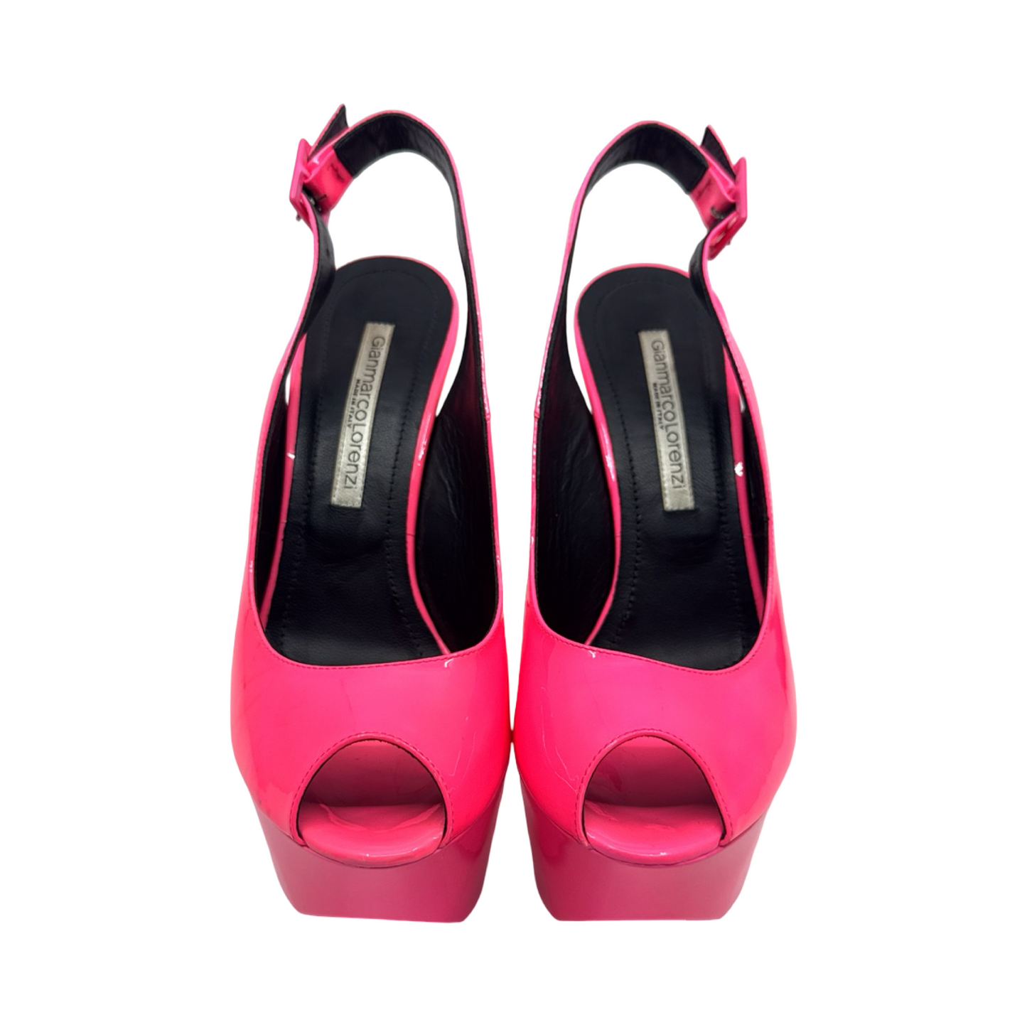 Gianmarco Lorenzi neon pink patent leather sling back platform heels in great unworn condition. 6inch heel