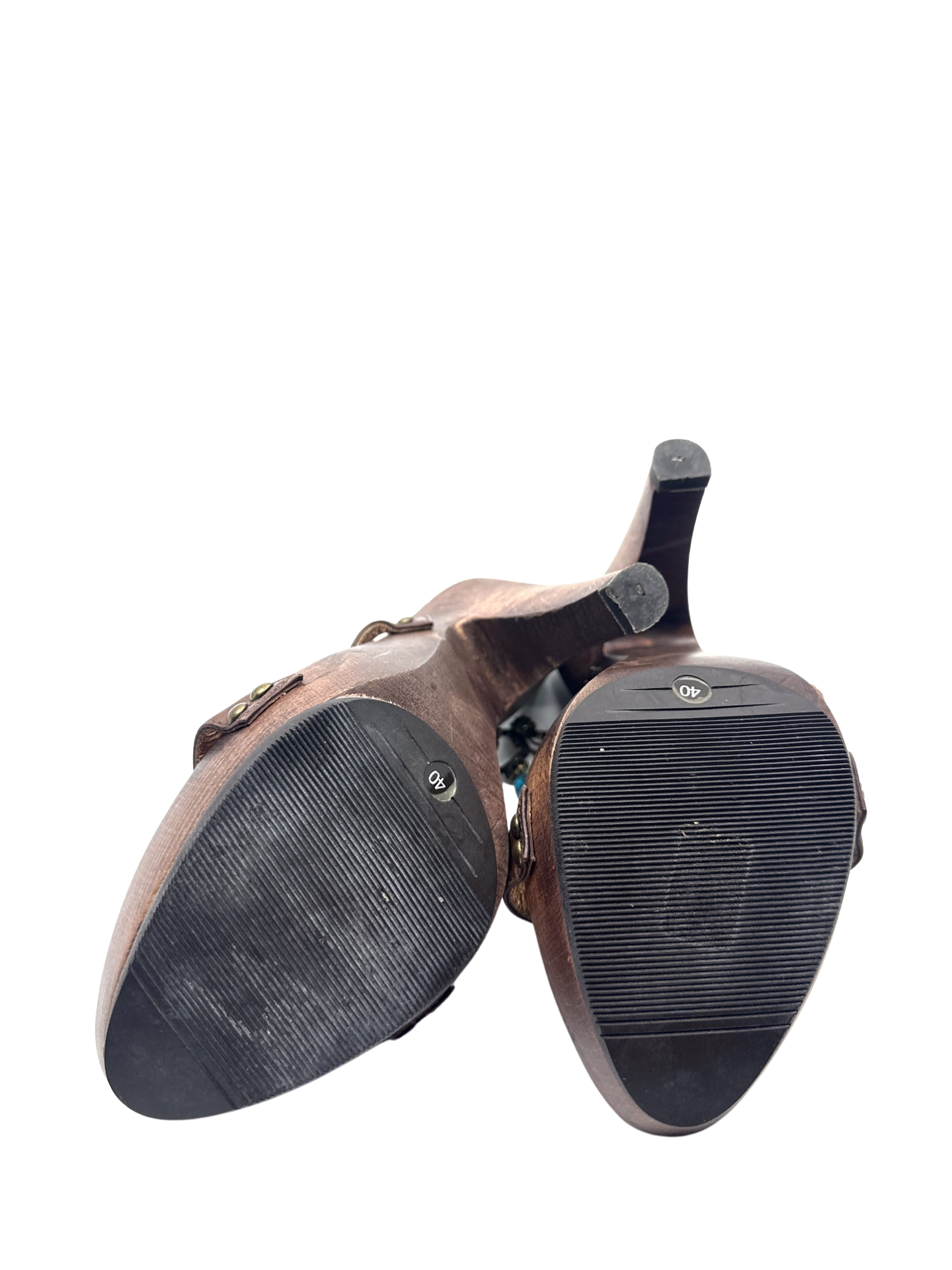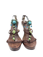 Giuseppe Zanotti brown leather sandals with turquoise gems and 6inch wooden platform heel. Brand new in excellent condition.