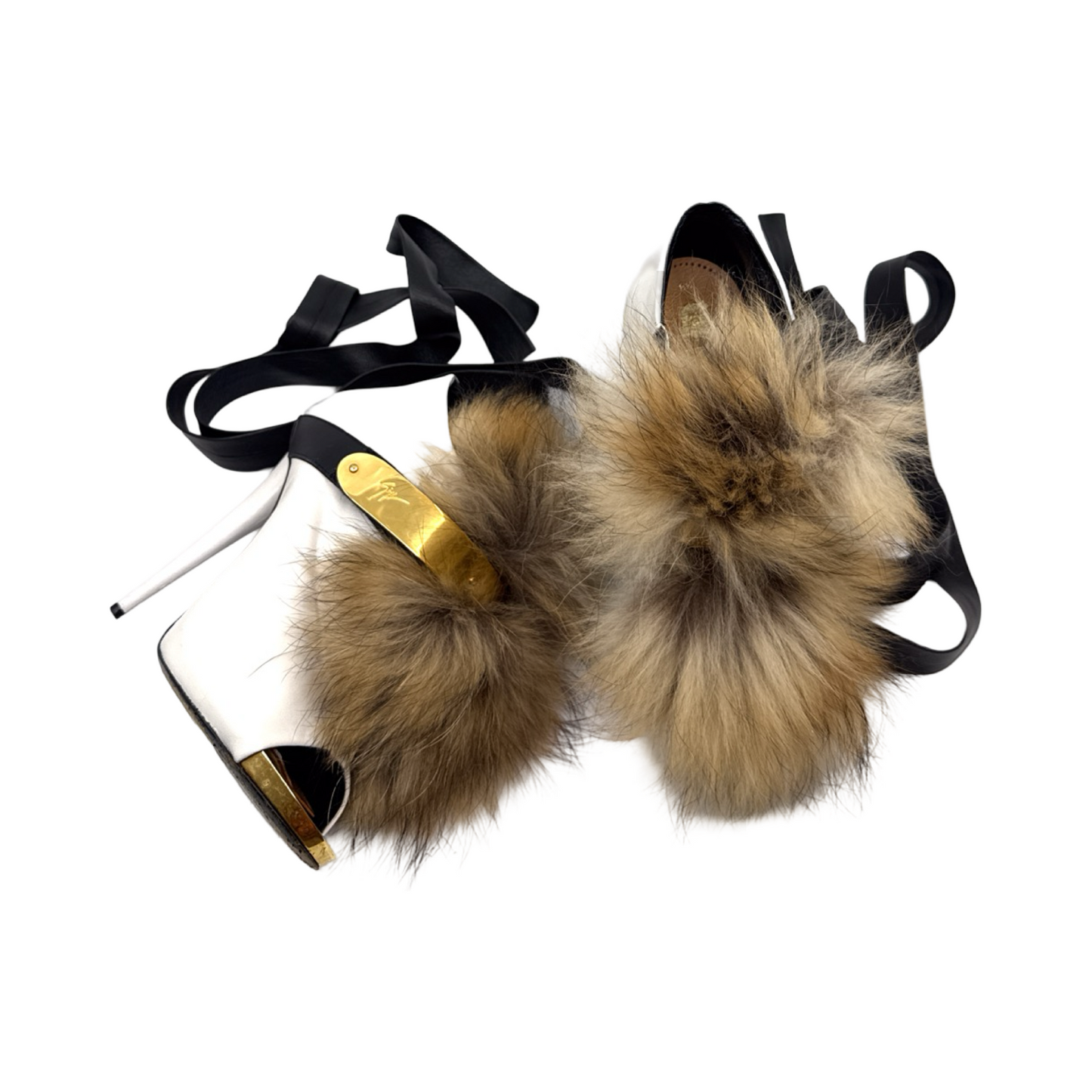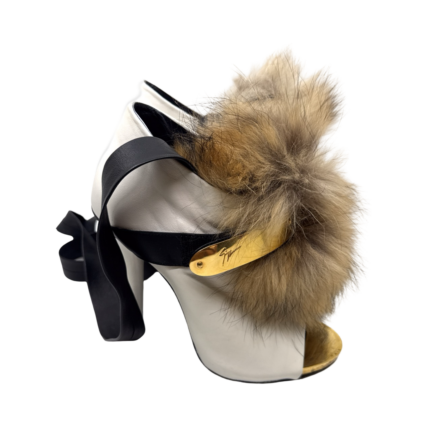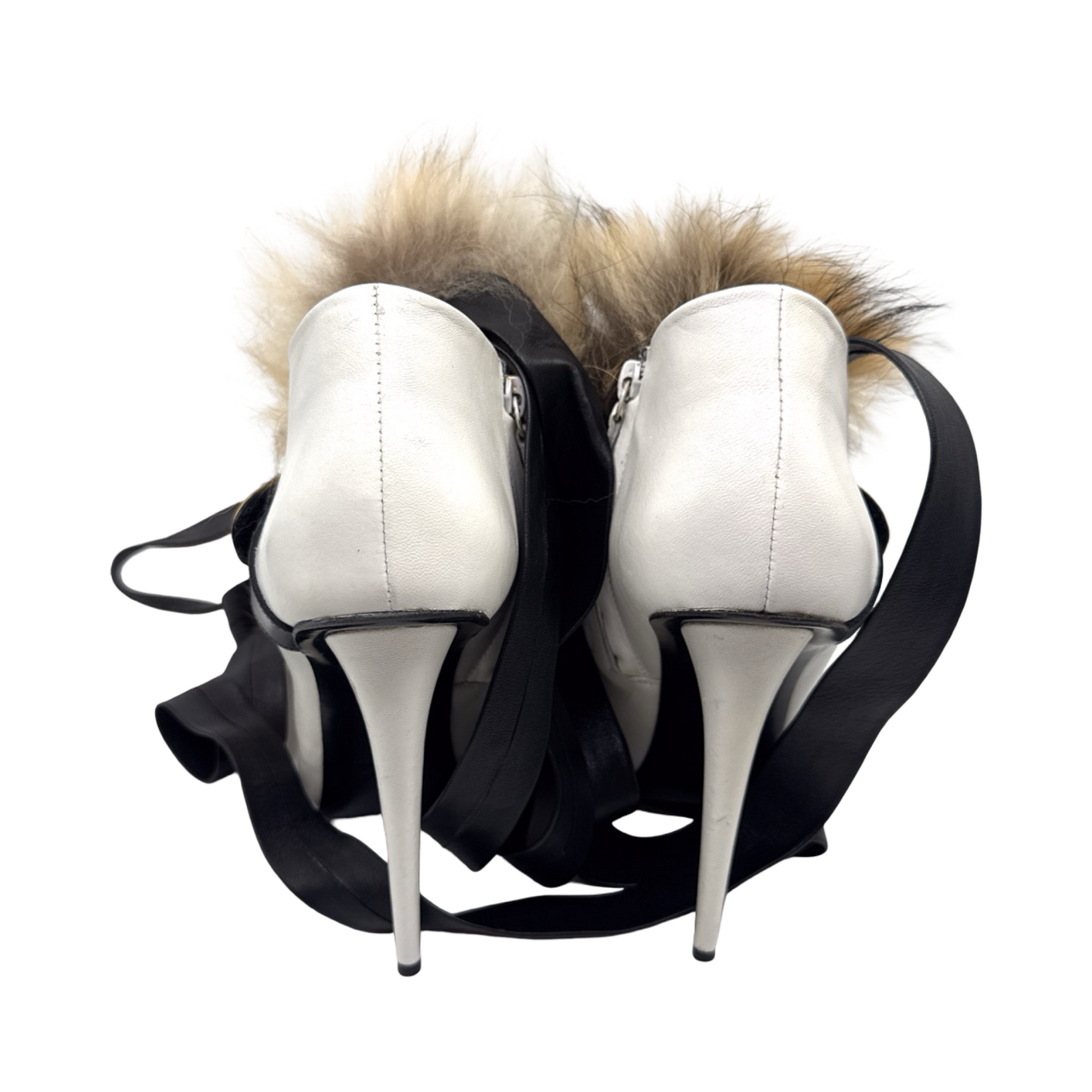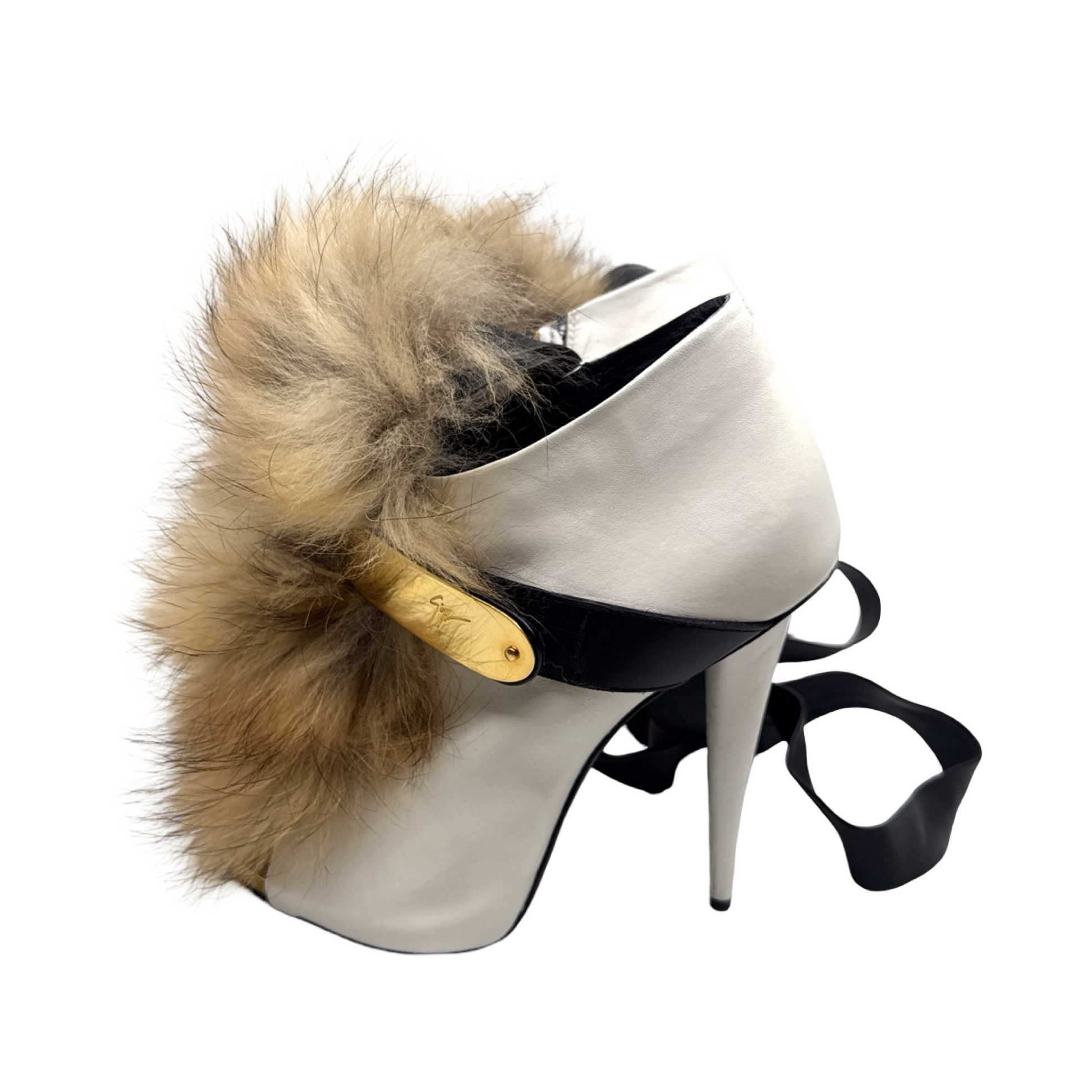 Giuseppe Zanotti white leather peep toe booties with fur.