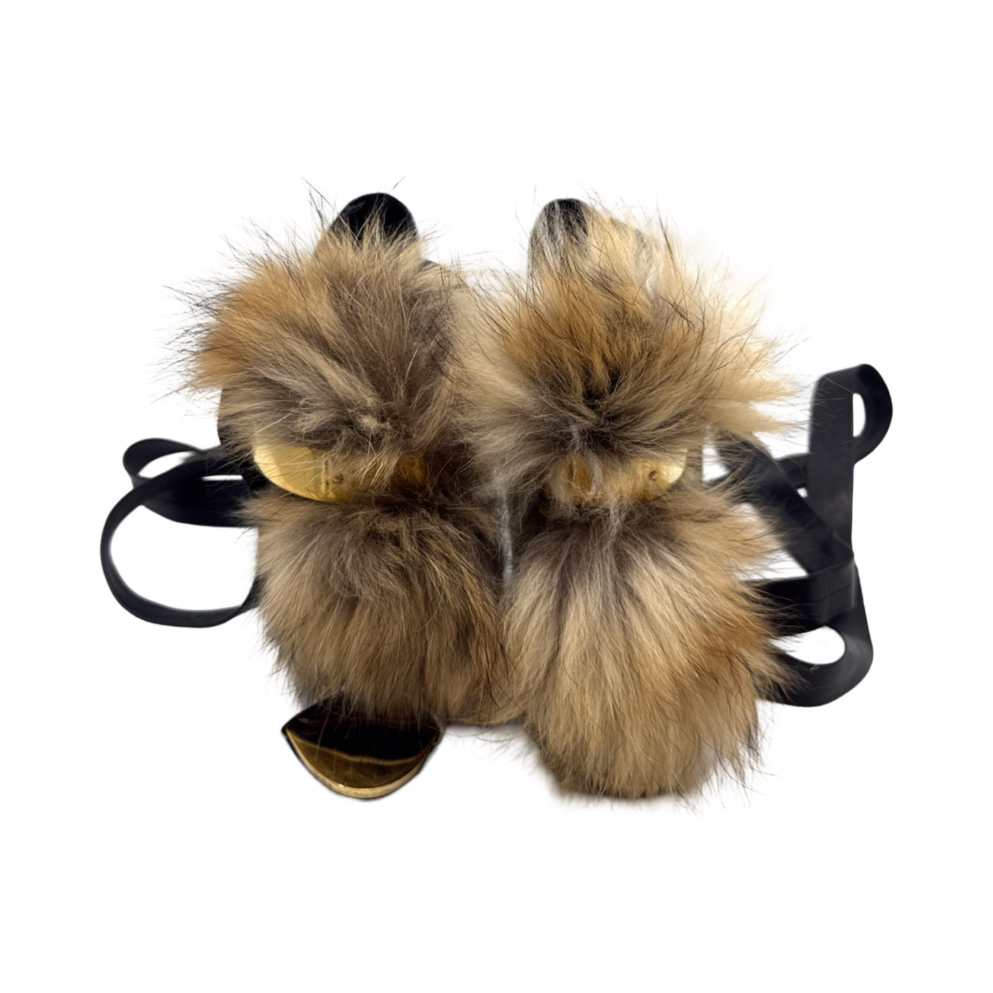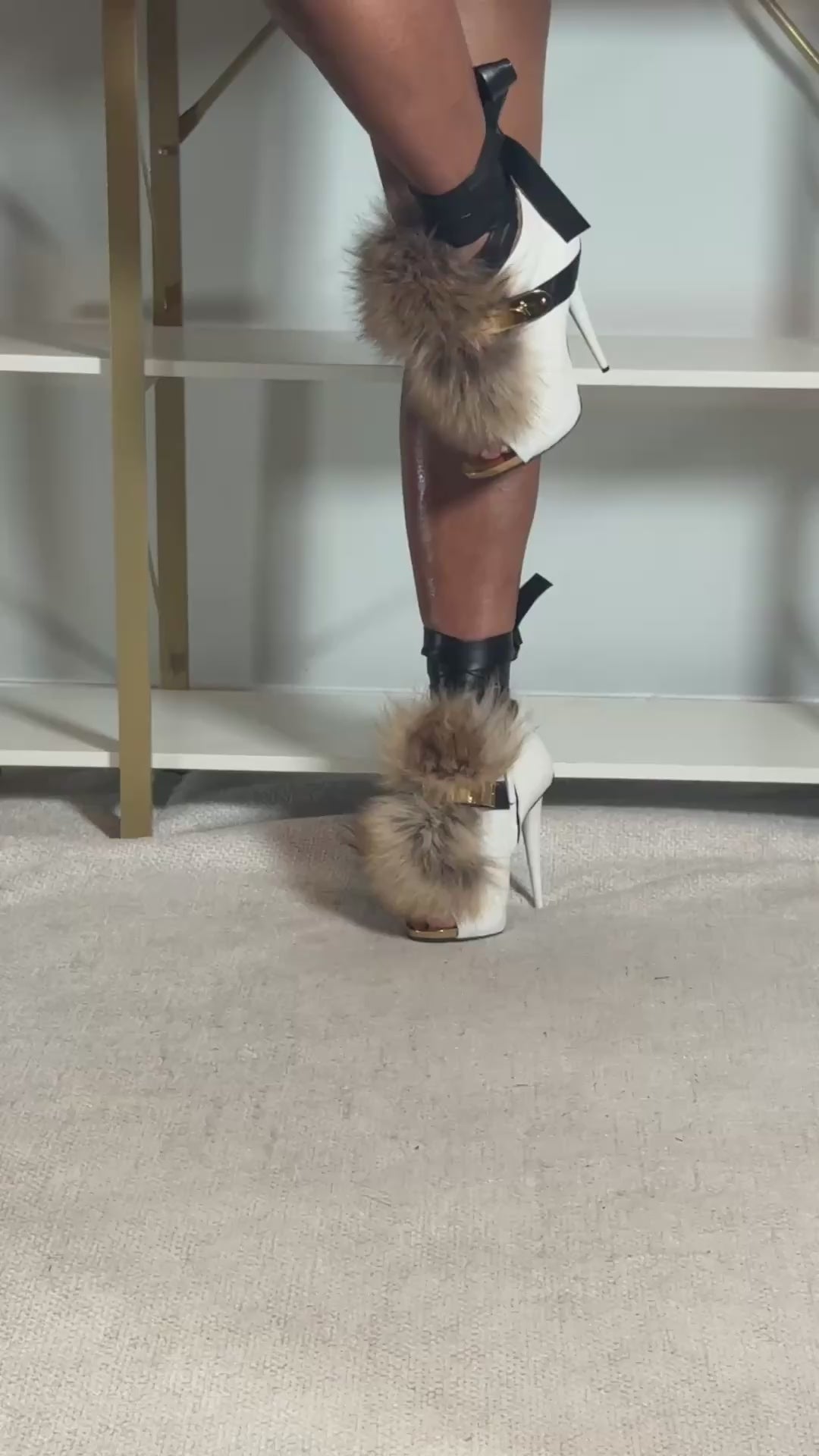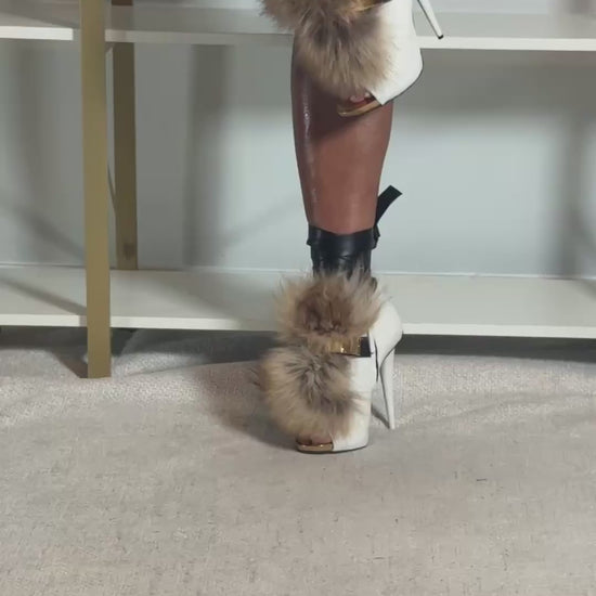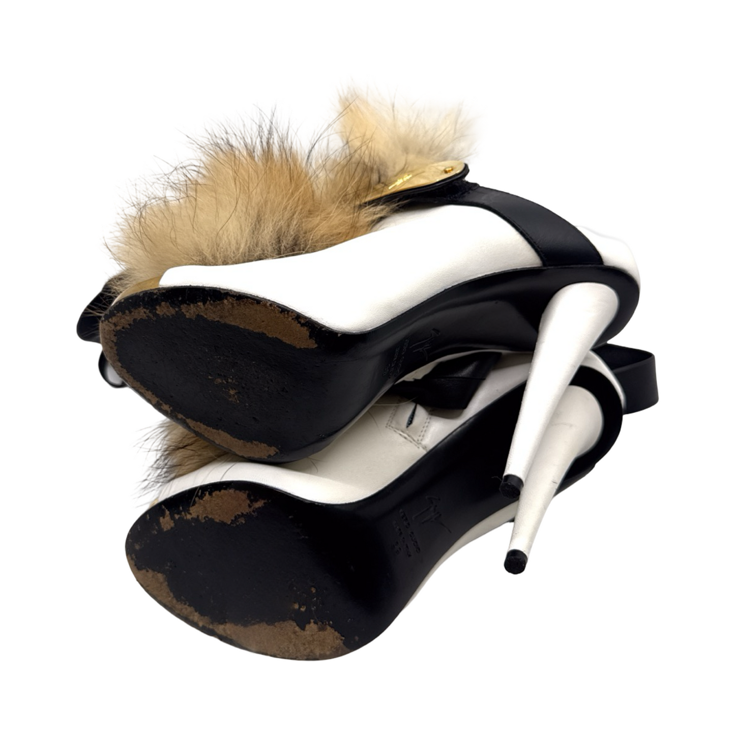 Giuseppe Zanotti white leather peep toe booties with fur.