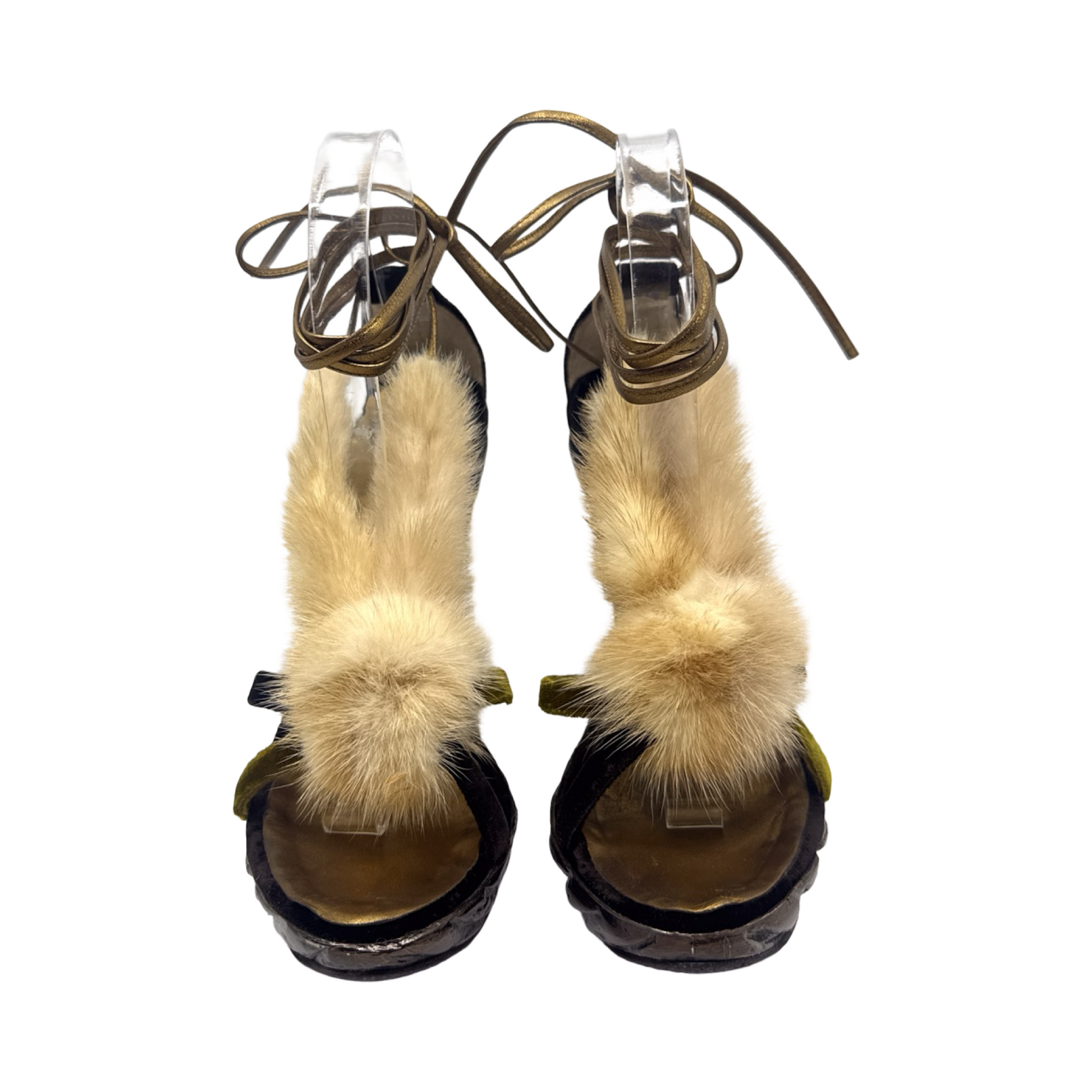 Giuseppe Zanotti wedge with mink fur trim. Brand new in excellent condition.
