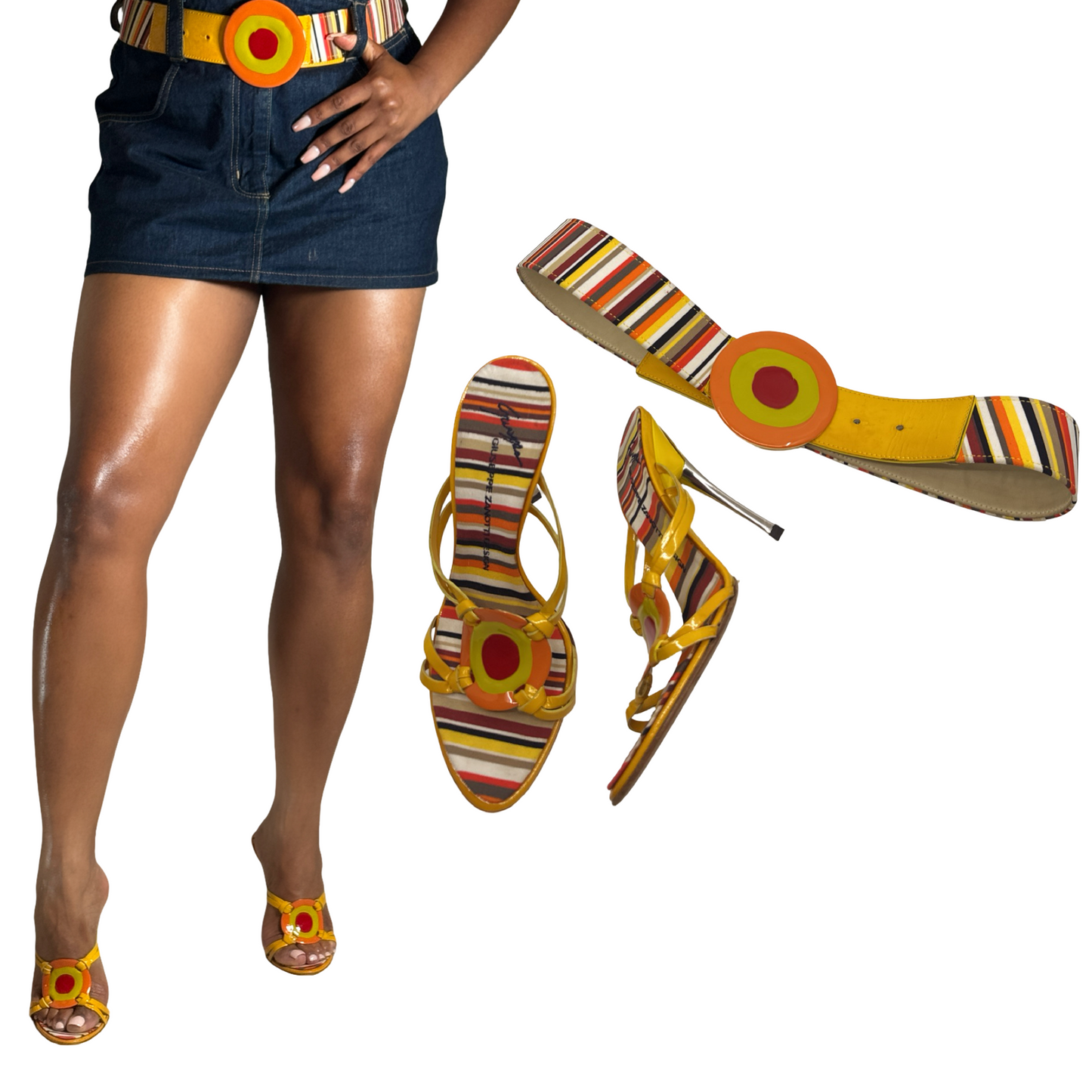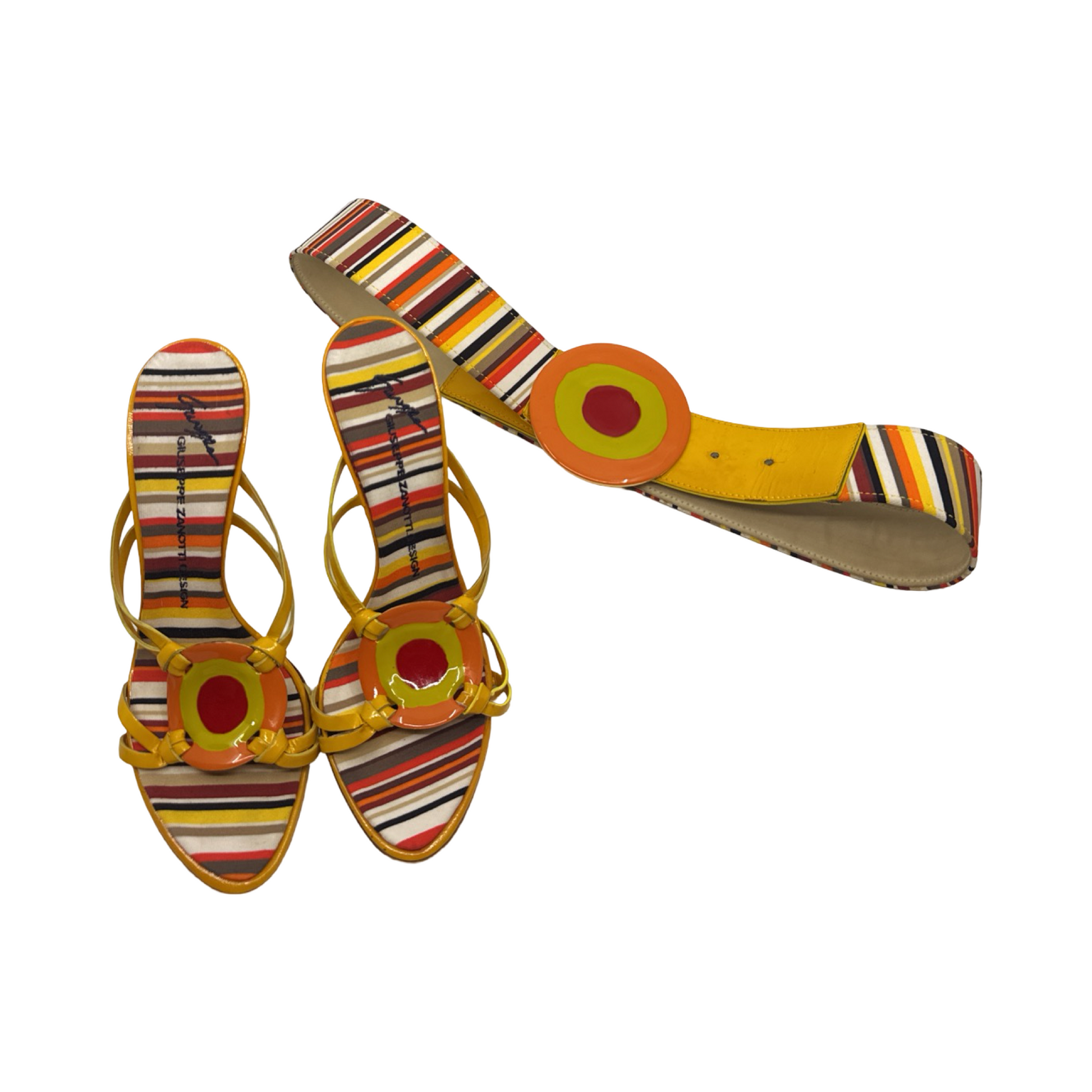 Giuseppe Zanotti multi colored matching belt and shoe. In great gently used condition. 5 inch heel. Belt is 29-32 inch waist.
