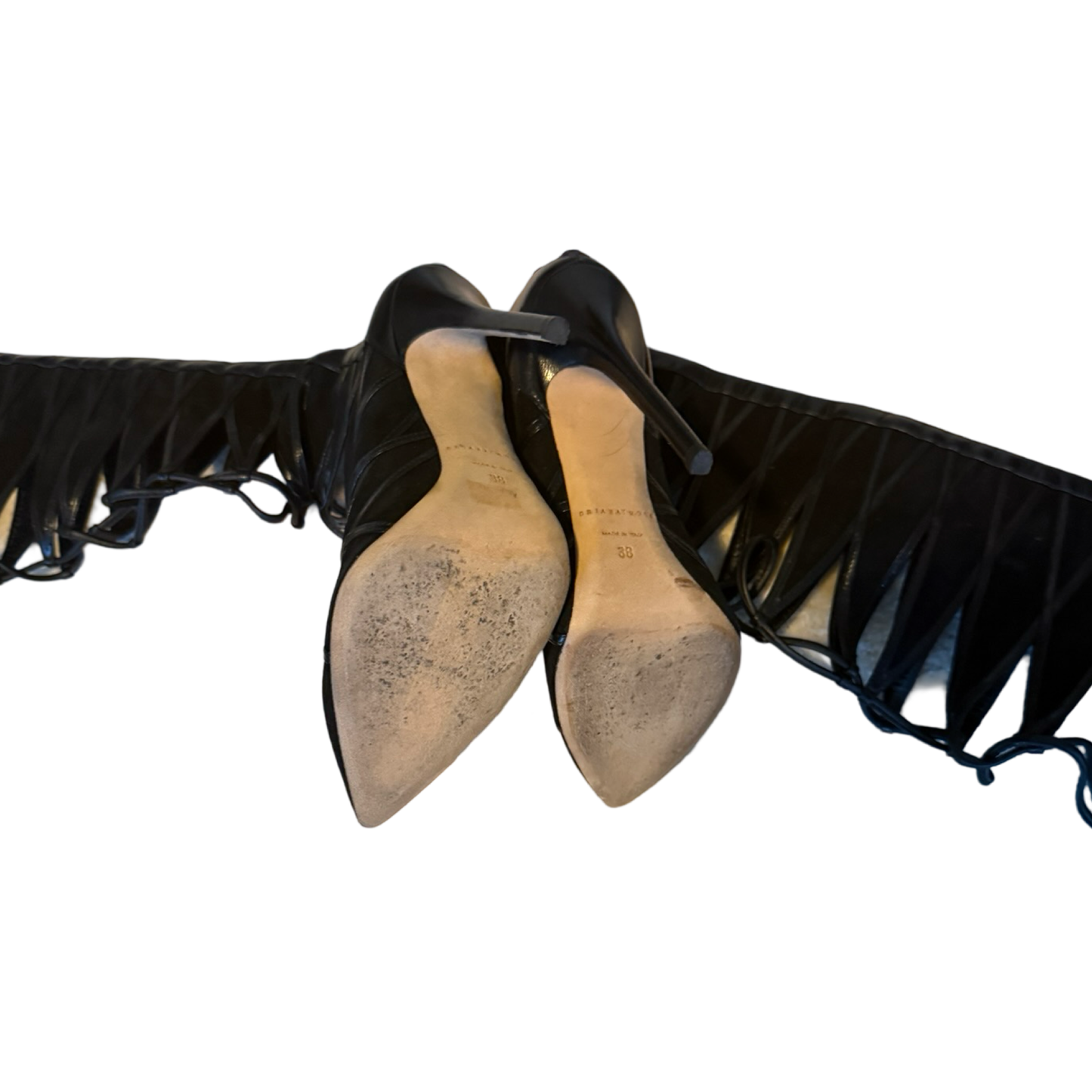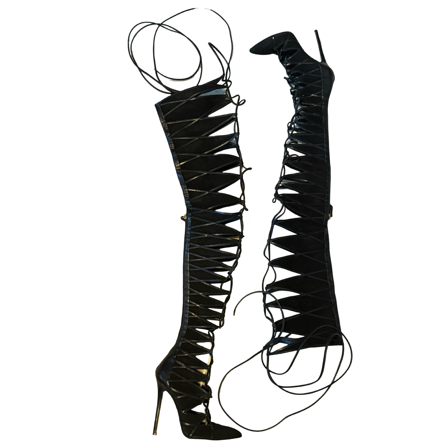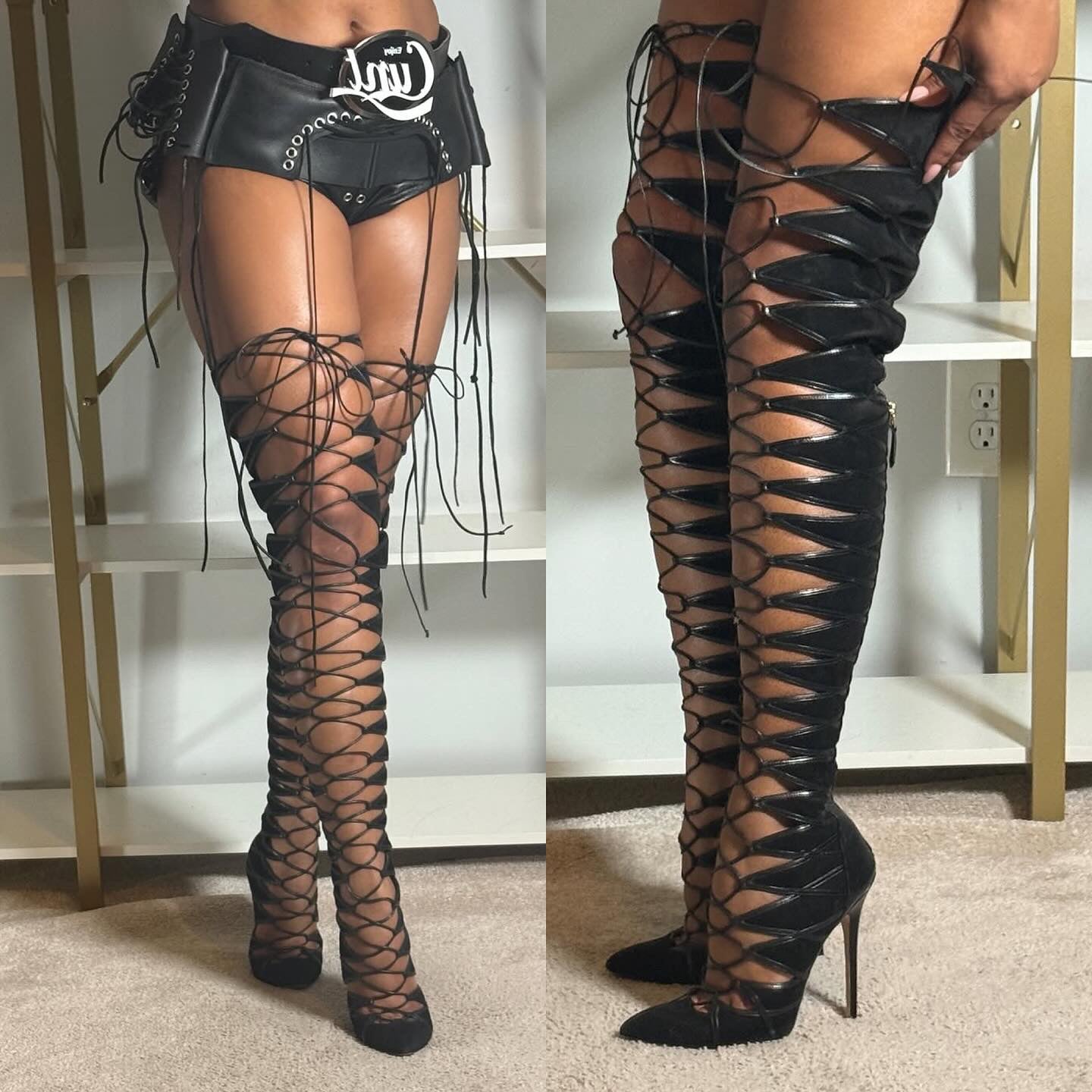 Rare Italian leather thigh high corset boots as seen on Victoria secret runway. In excellent condition, 4 inch heel.