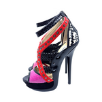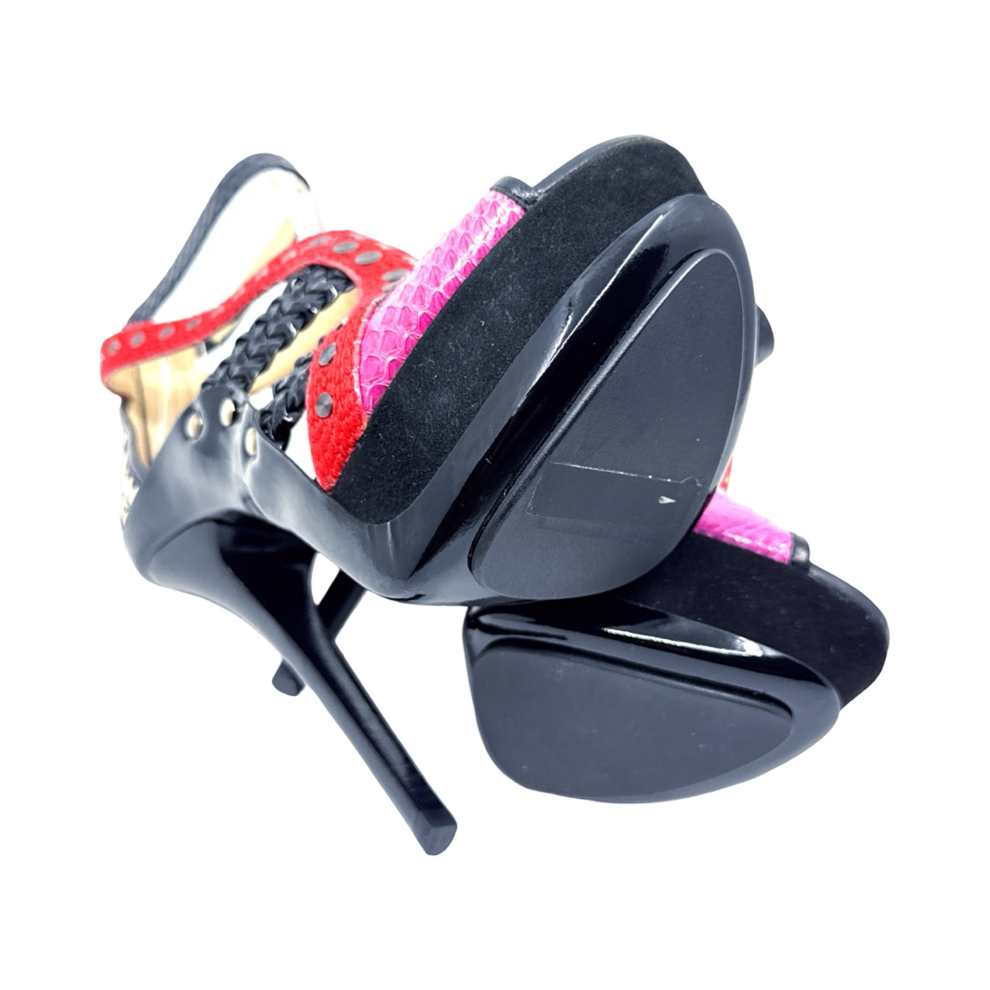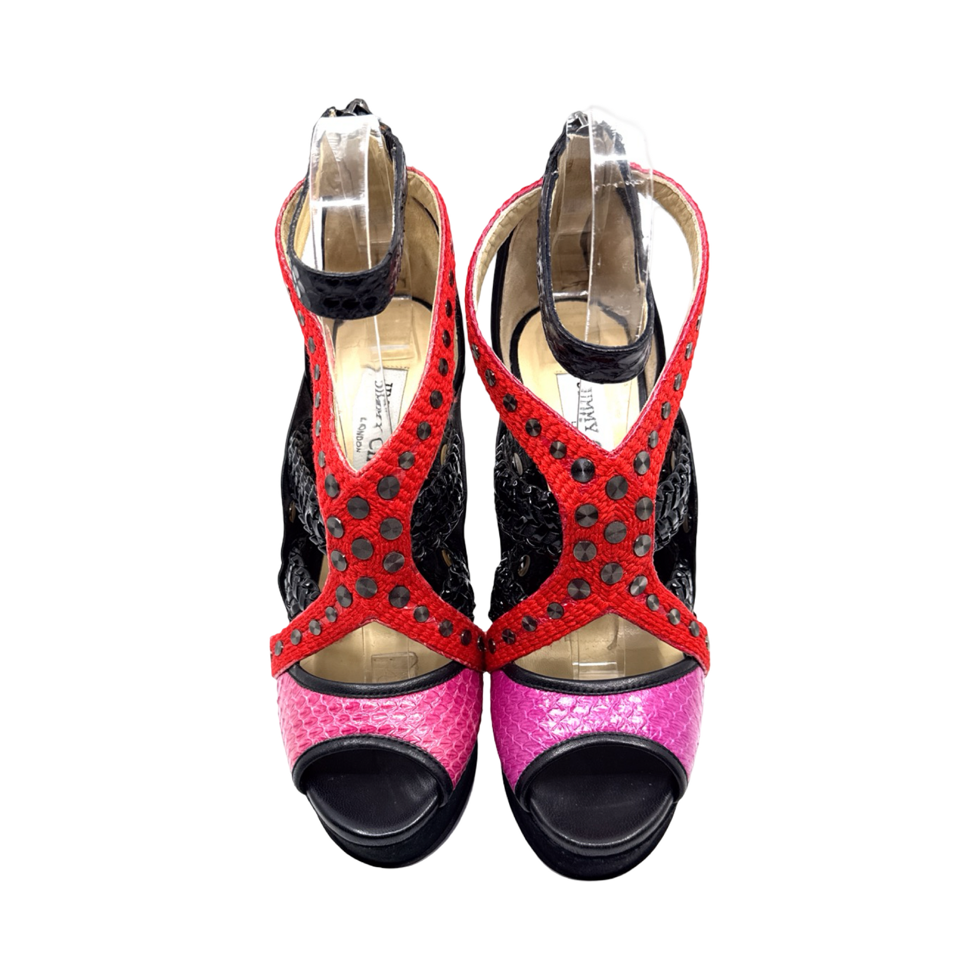 Jimmy Choo tri color platform sandal in excellent condition. 6 inch heel.