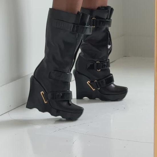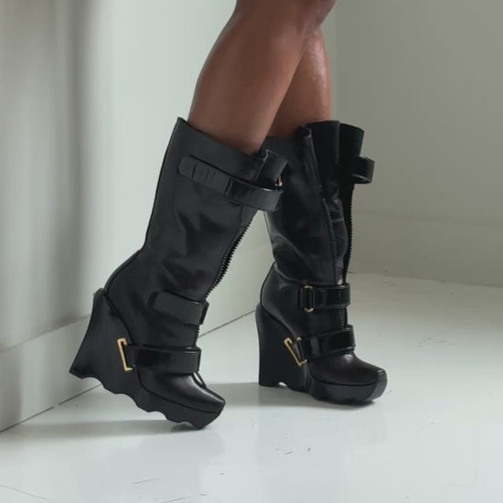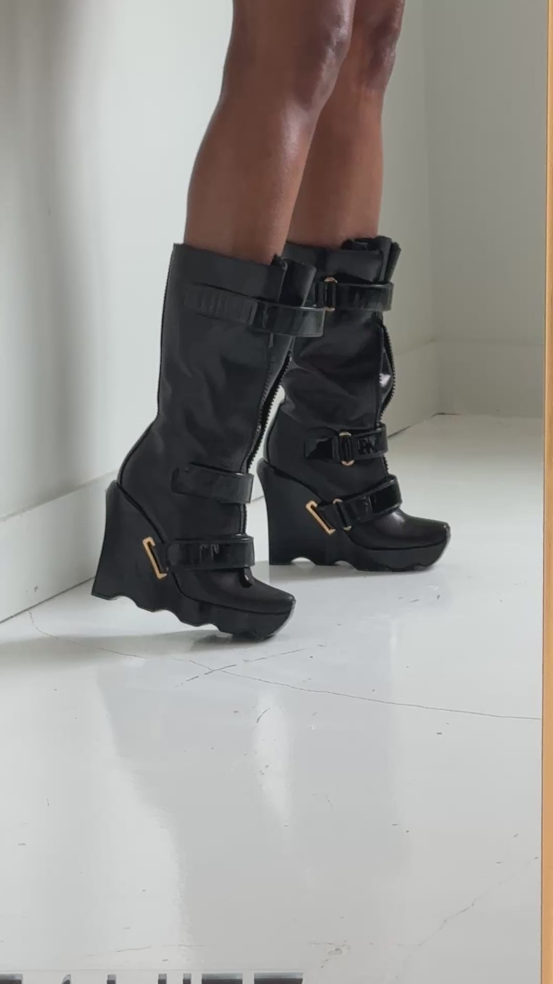 Louis Vuitton limited edition runway wedge boots in brand new excellent condition. 4.5 inch wedge.