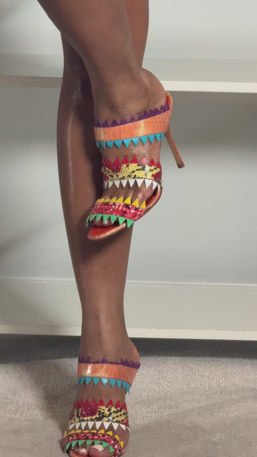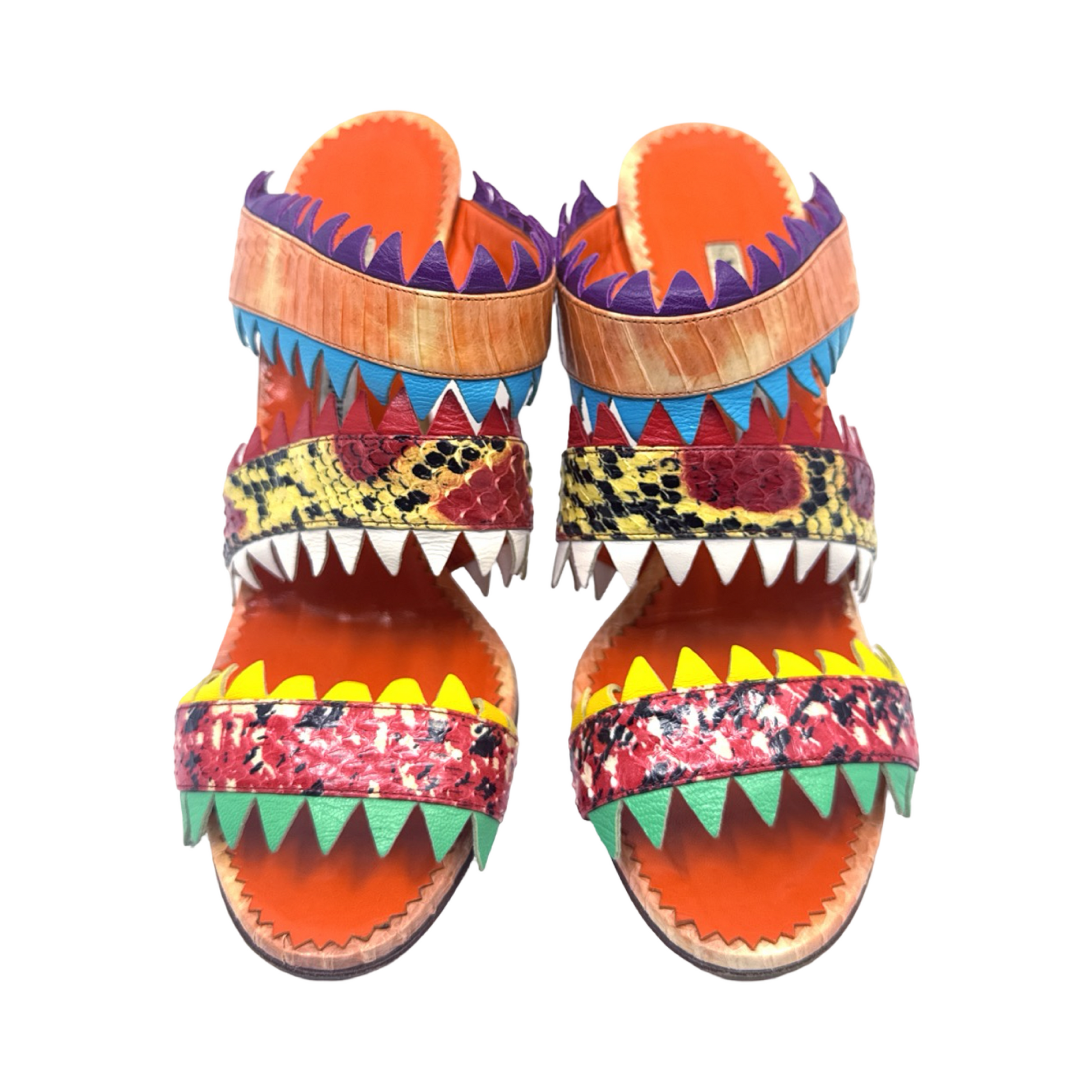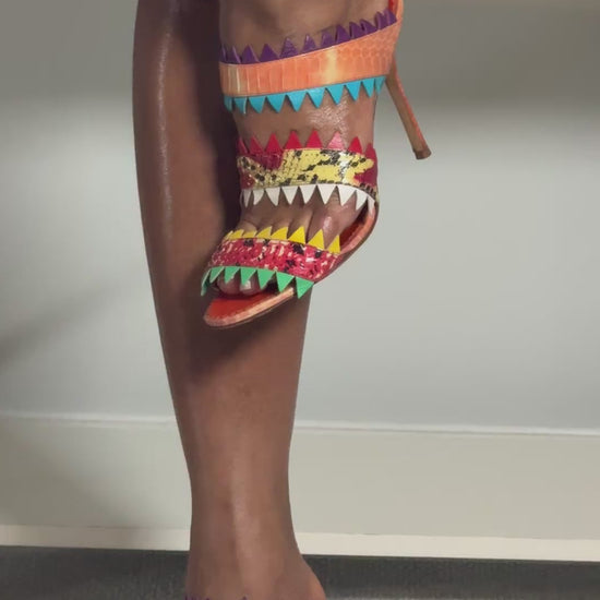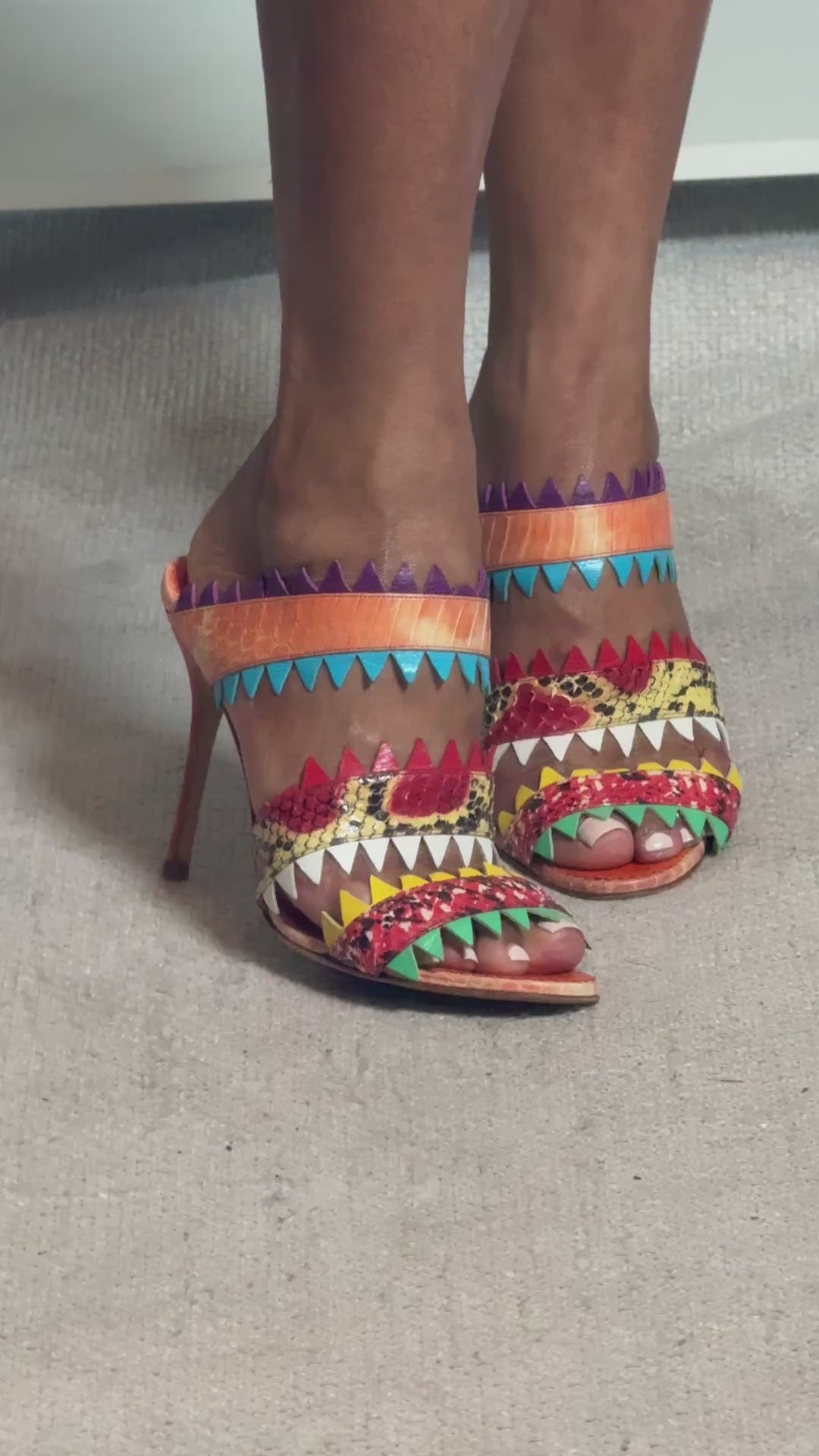Manolo Blahnik multi colored snakeskin sandals. In great gently used condition, 4 inch heel.