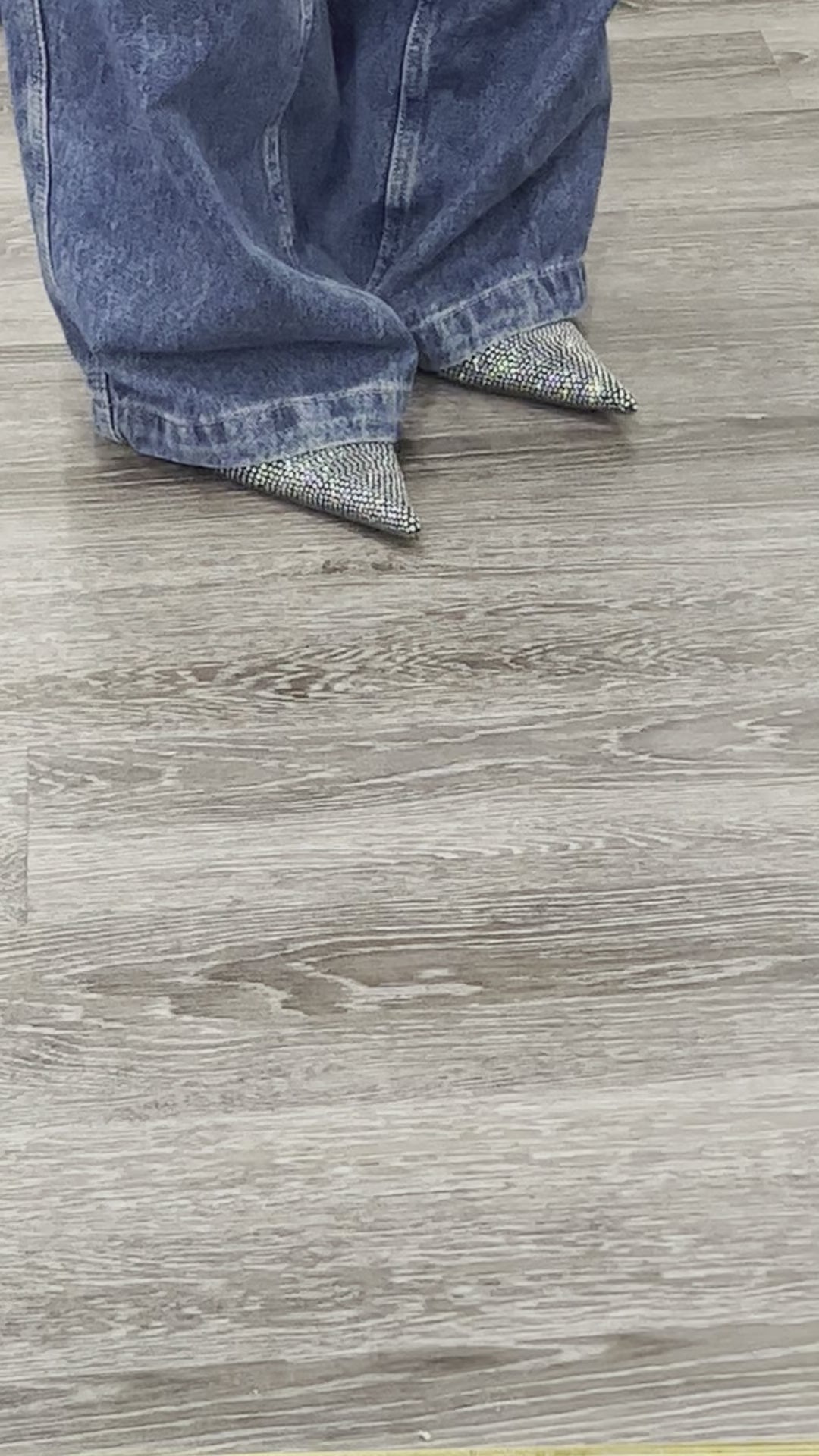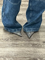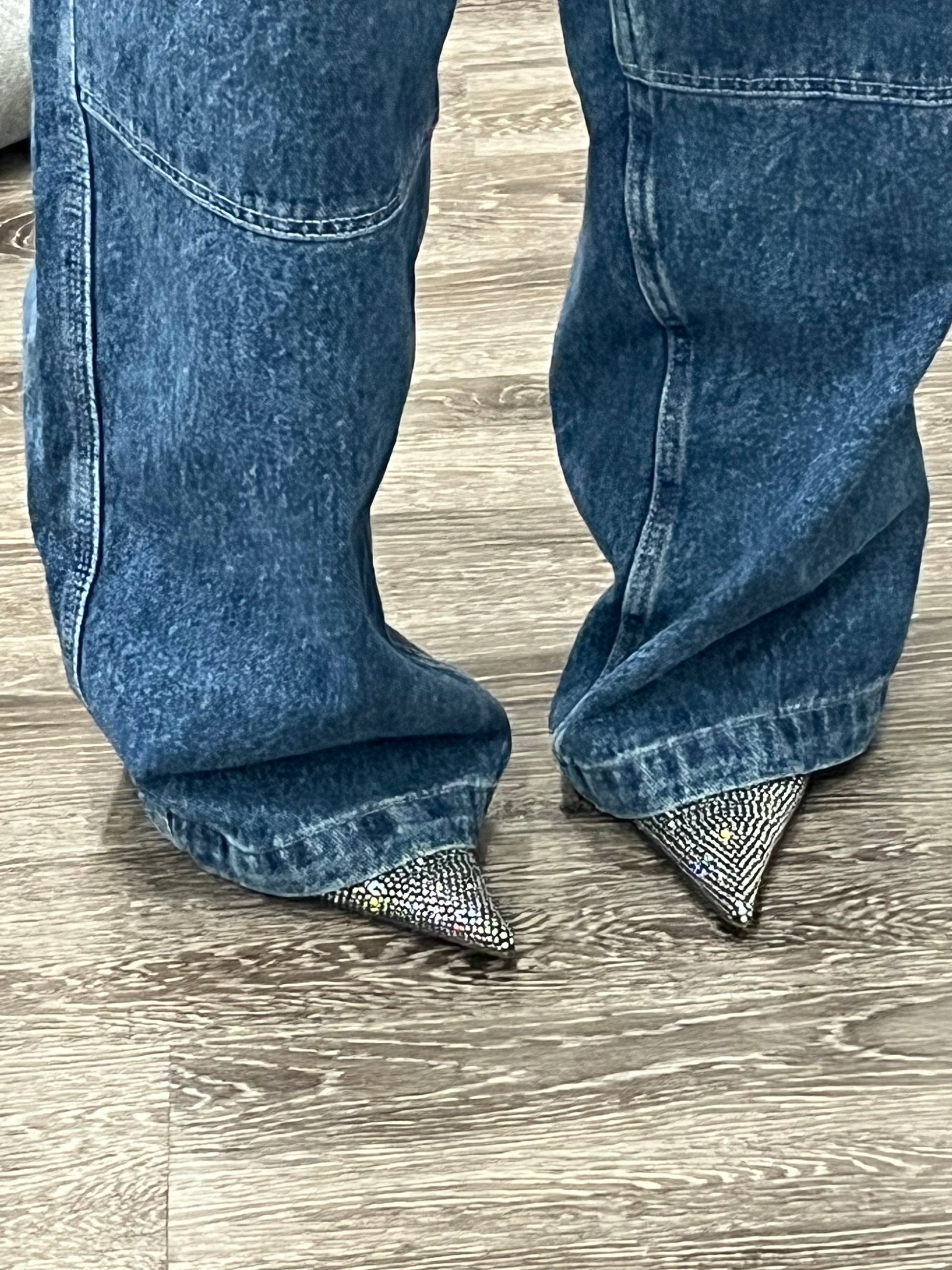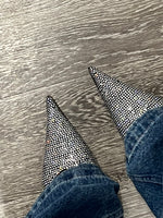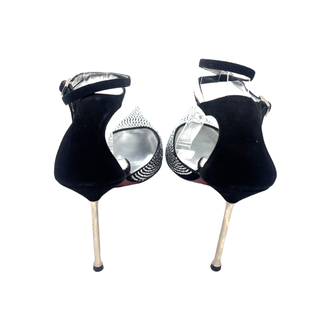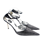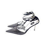Sacca 1823 black pointed toe pump with wrap around ankle strap with 3inch silver stiletto heel . Unworn
