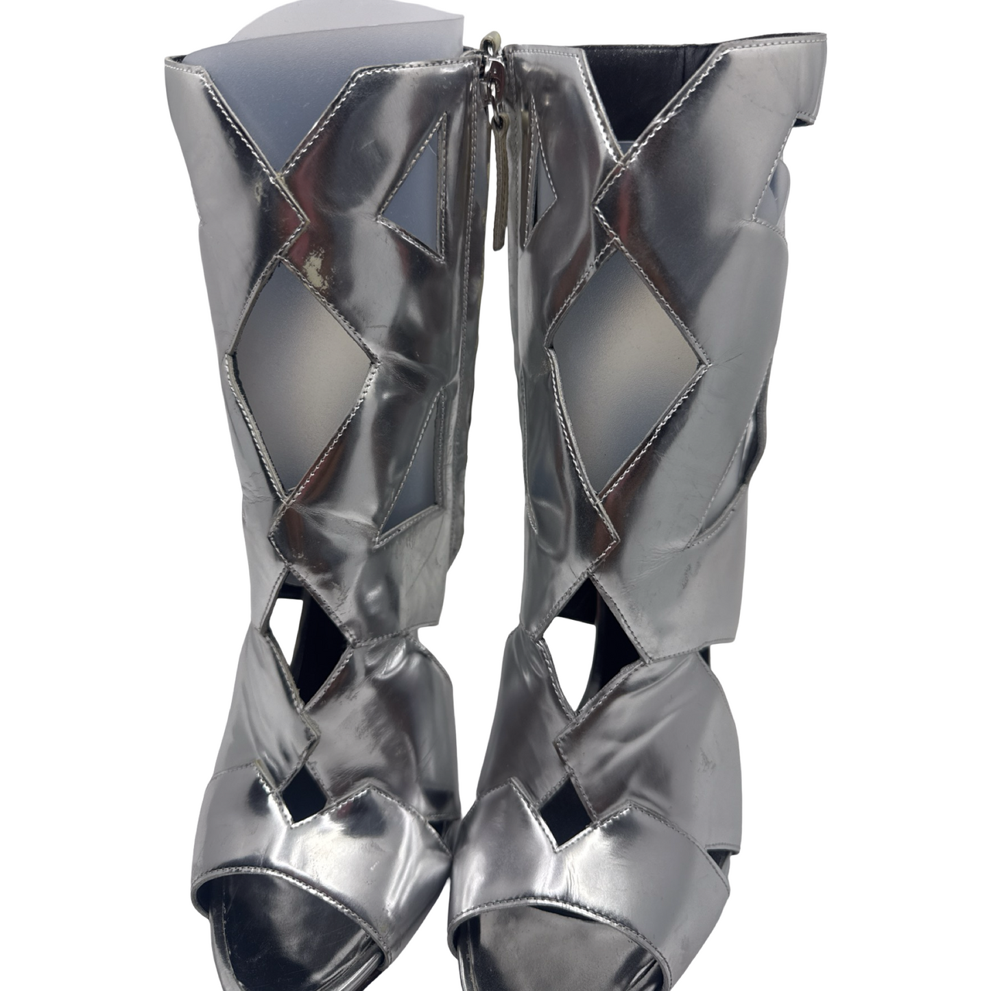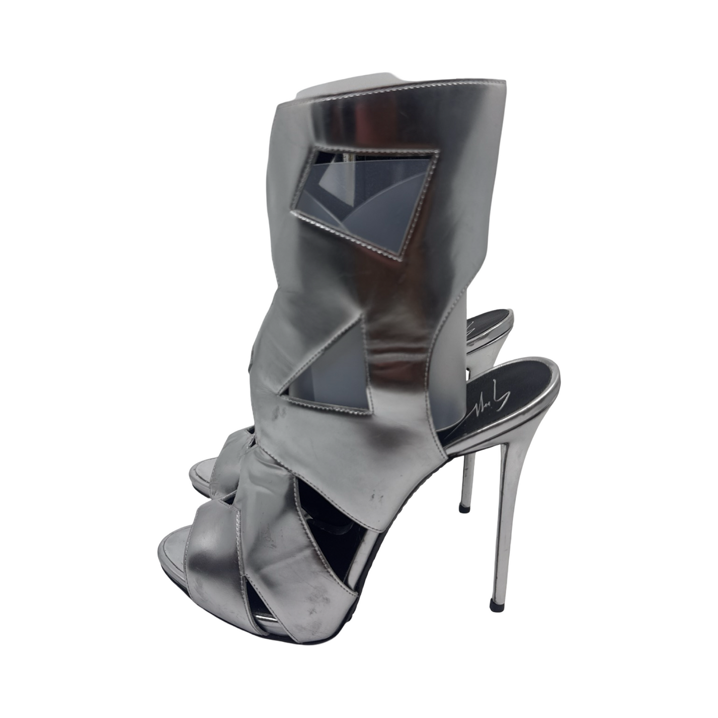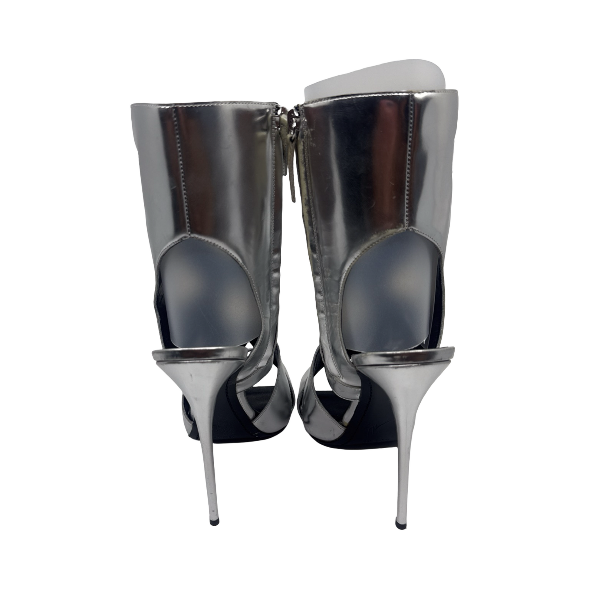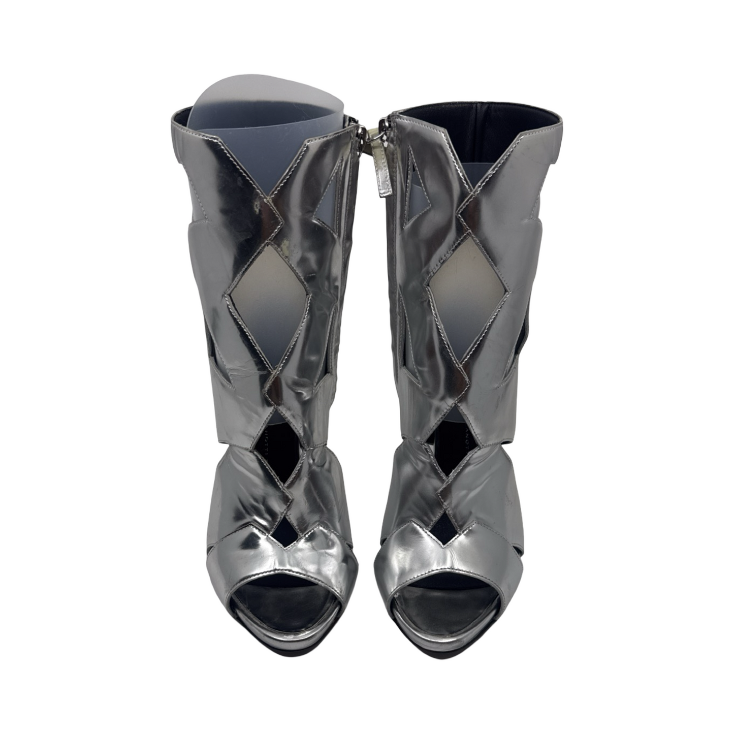 Giuseppe Zanotti silver metallic cut out booties. Unworn with minor scratches throughout not obvious when on.