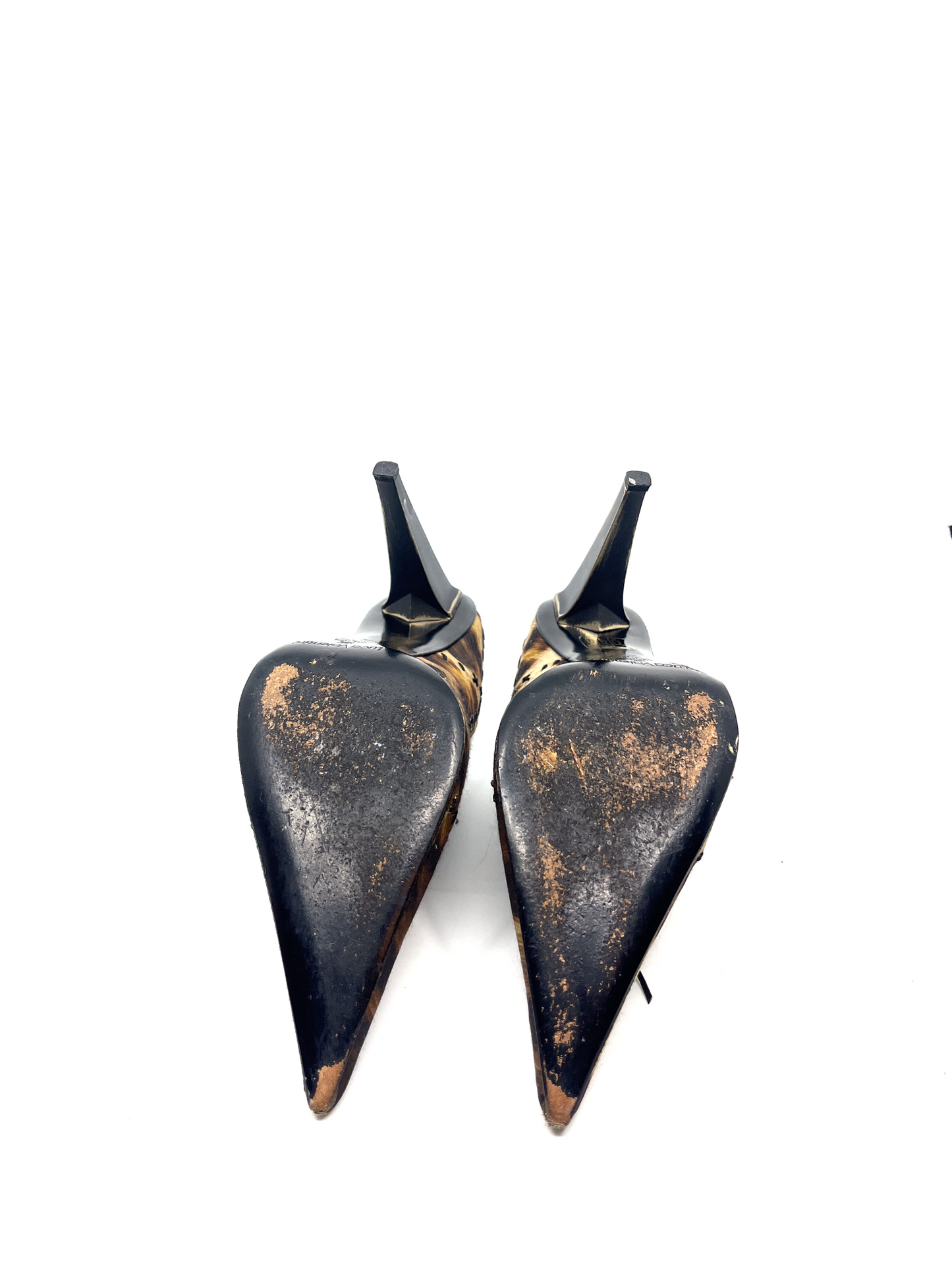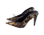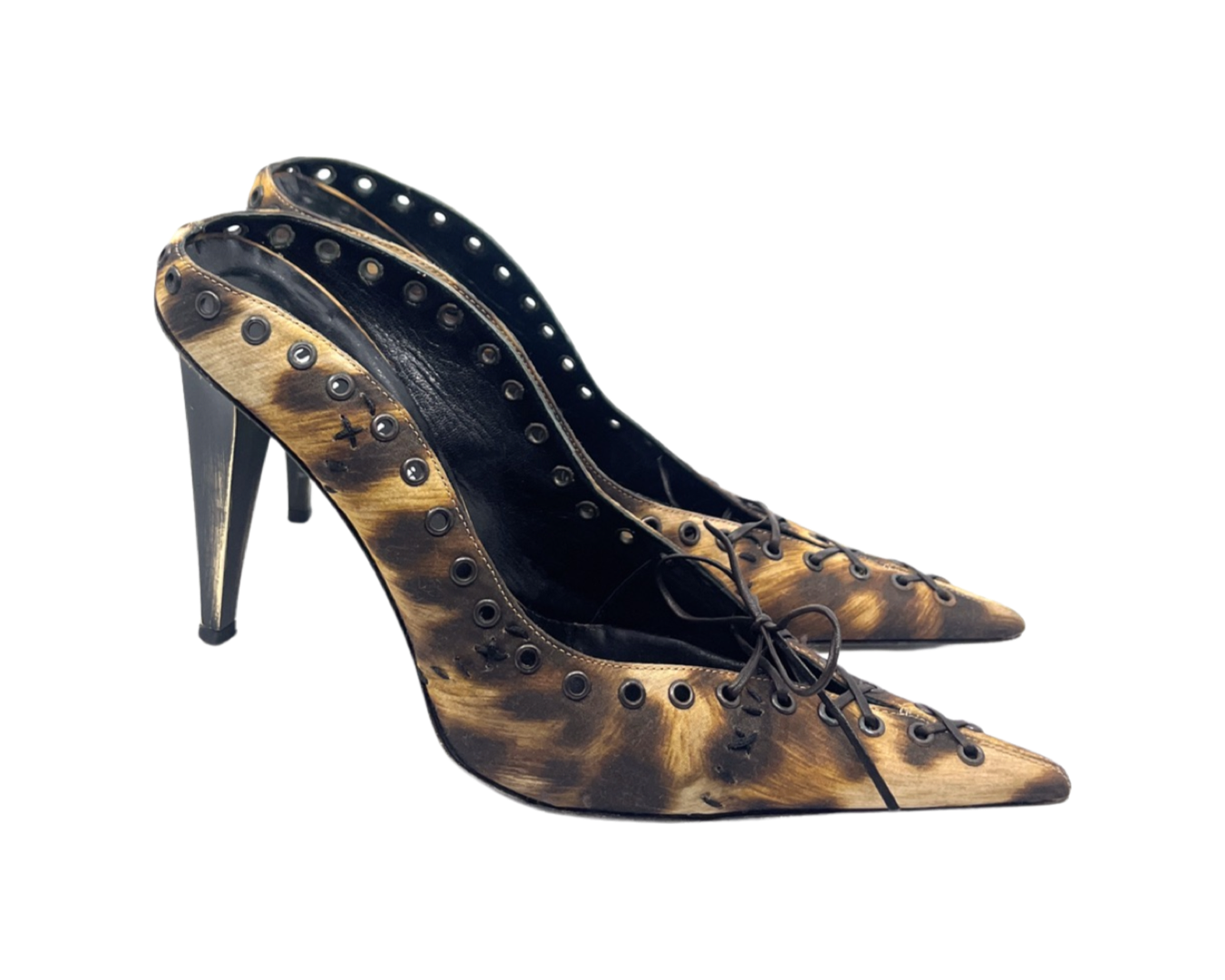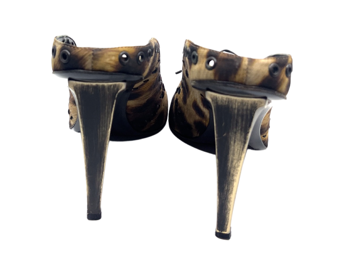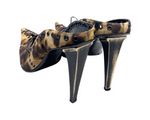 Vintage leopard mule with lace up detail and metal heel