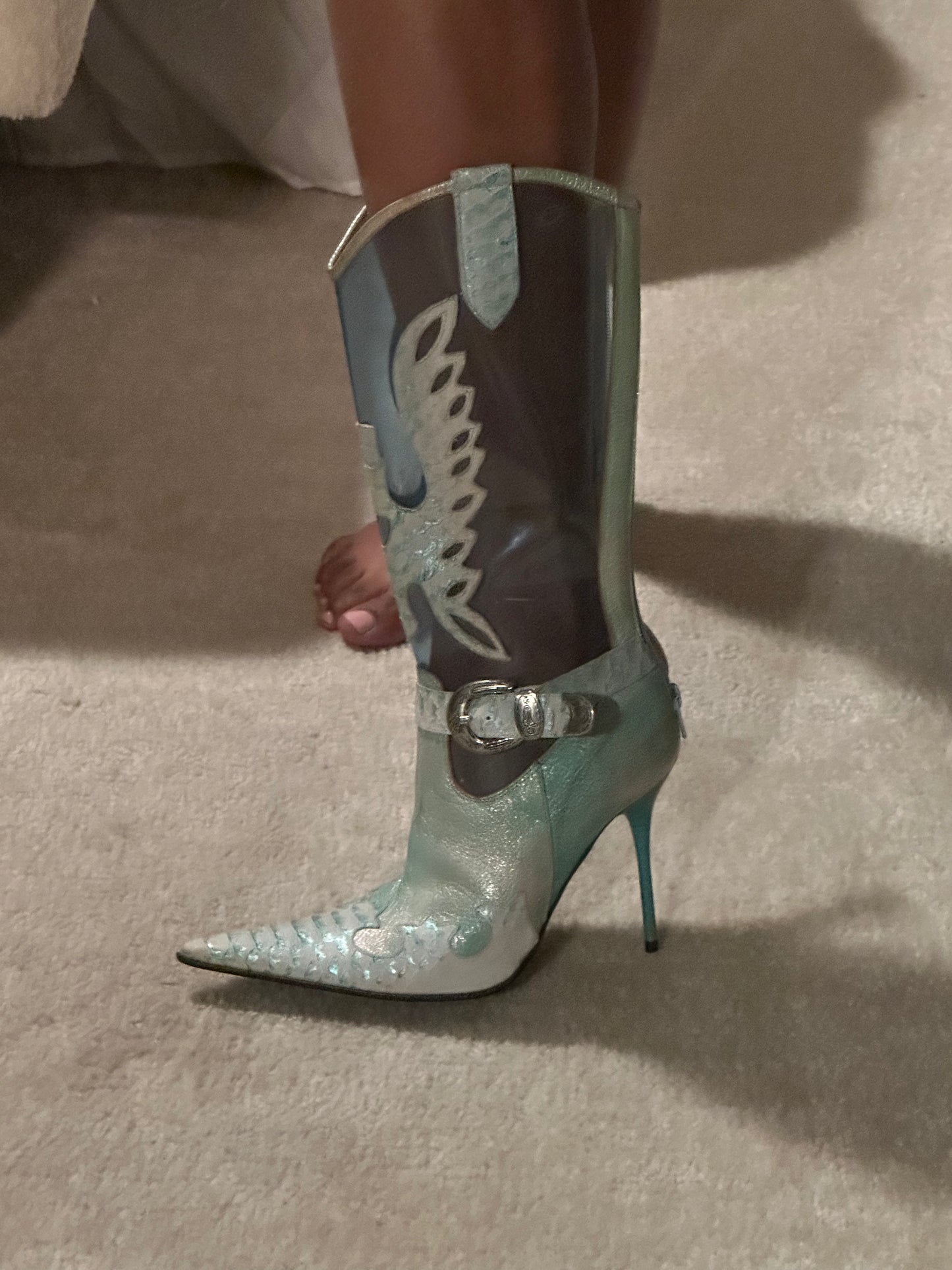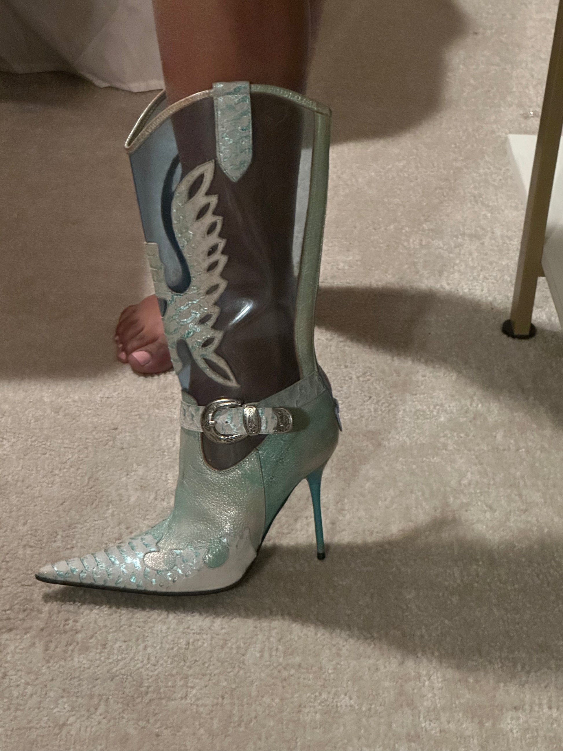 Vintage snakeskin and pvc western stiletto boots in great condition.