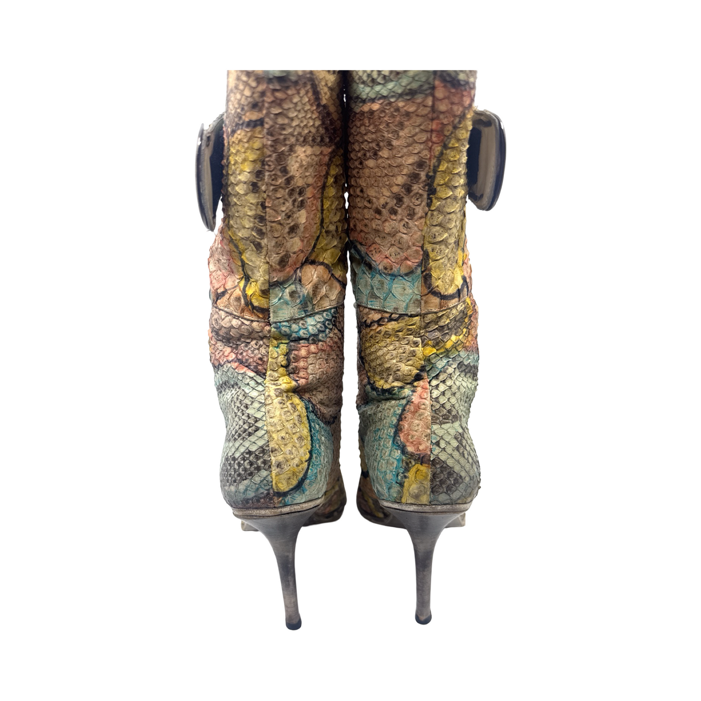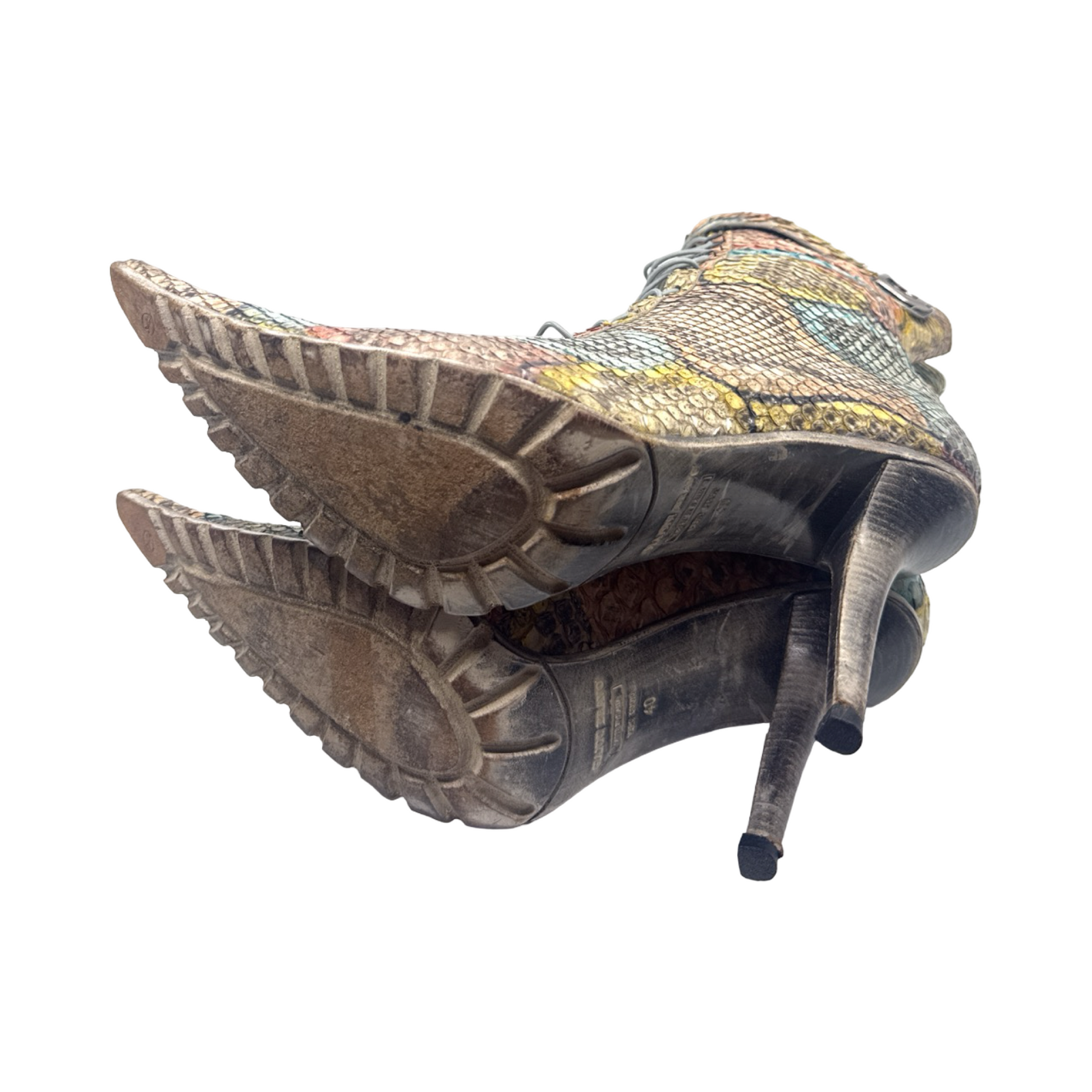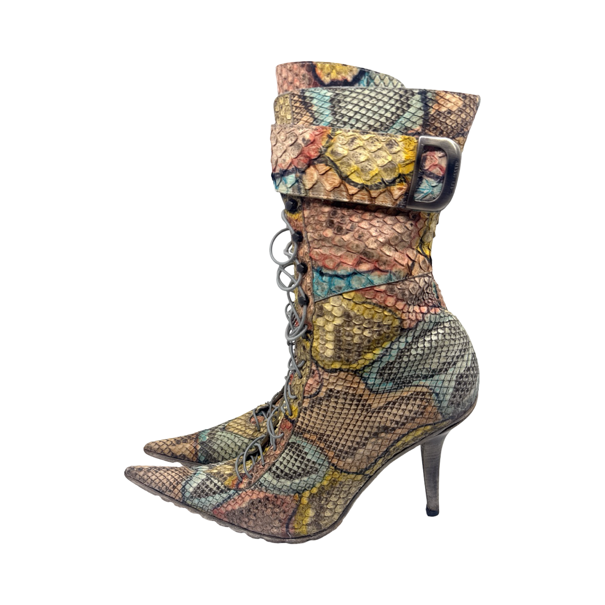 Vintage Italian multi colored python lace up boots. In great gently used condition, 4.5 inch heel.