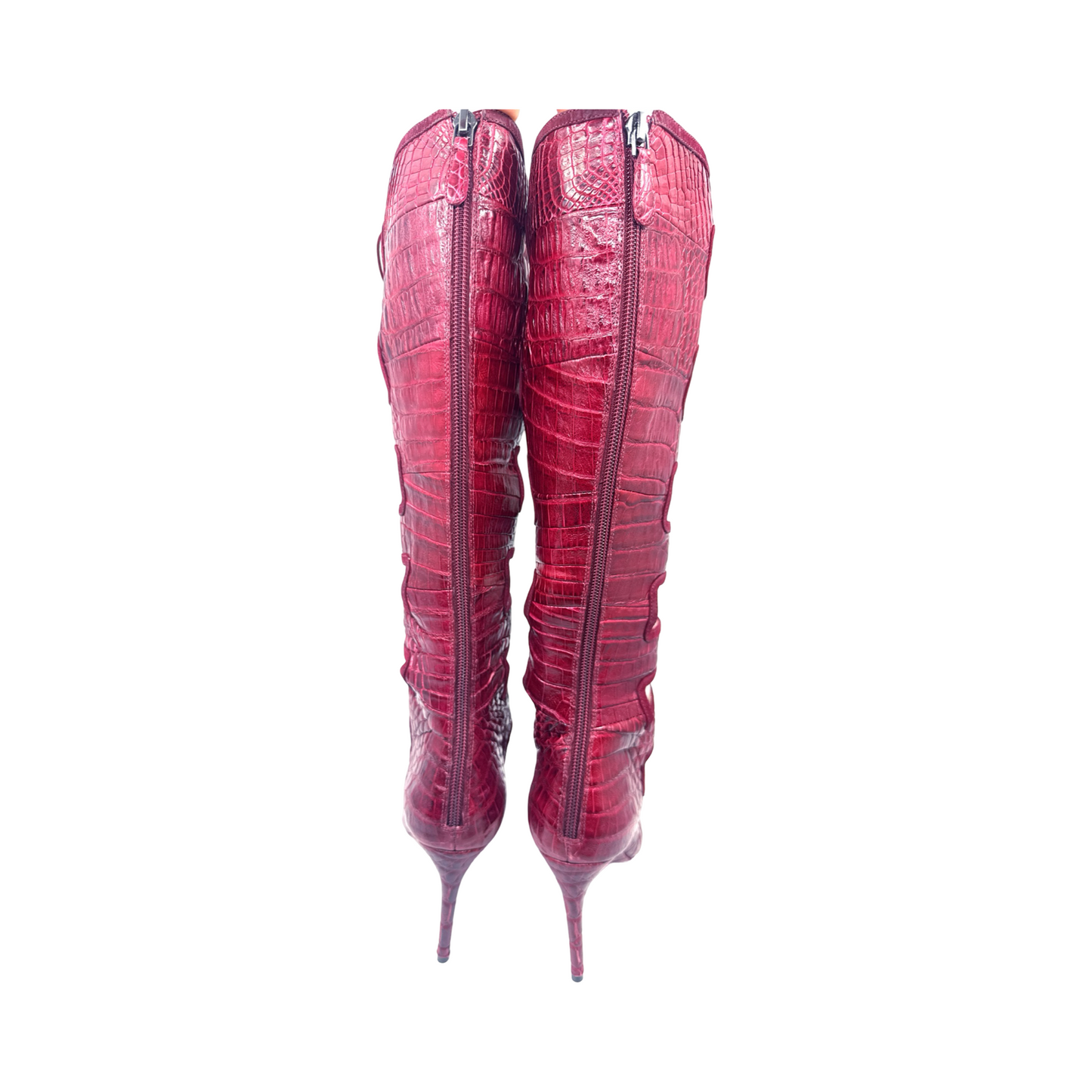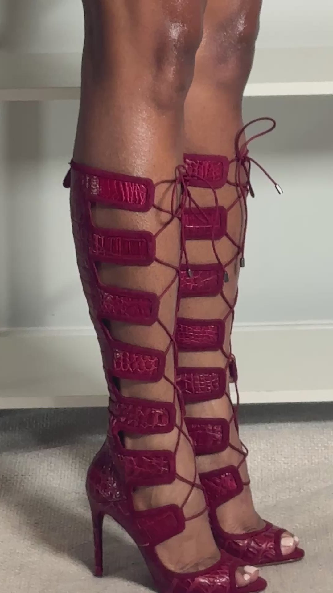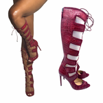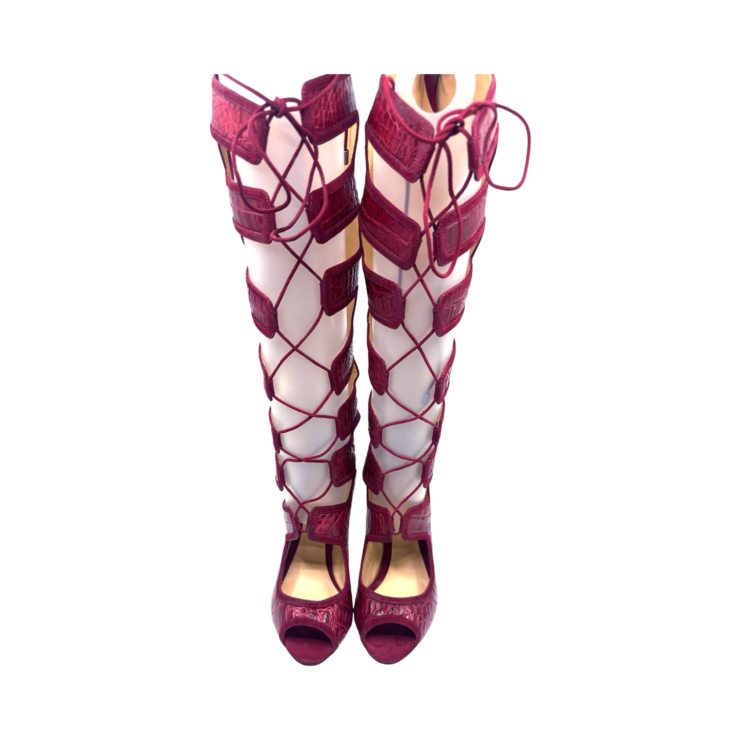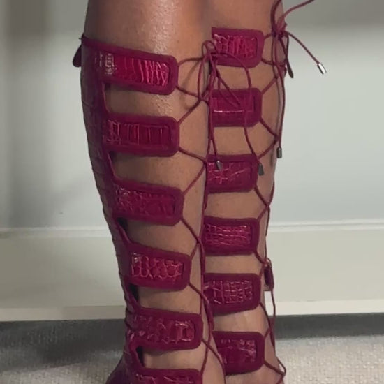 Vintage Italian red croc embossed gladiator sandal. Brand new in excellent condition. 4 inch heel.