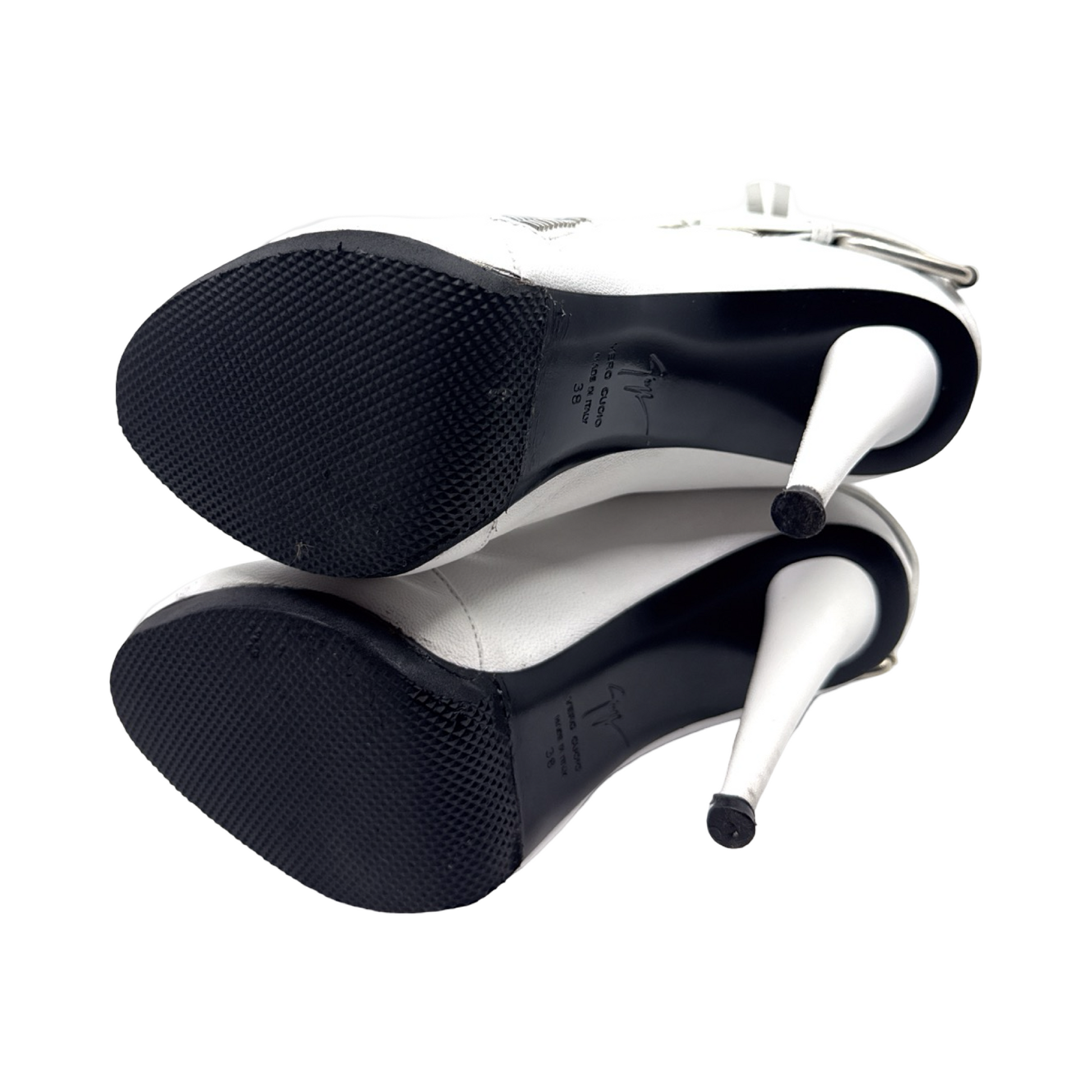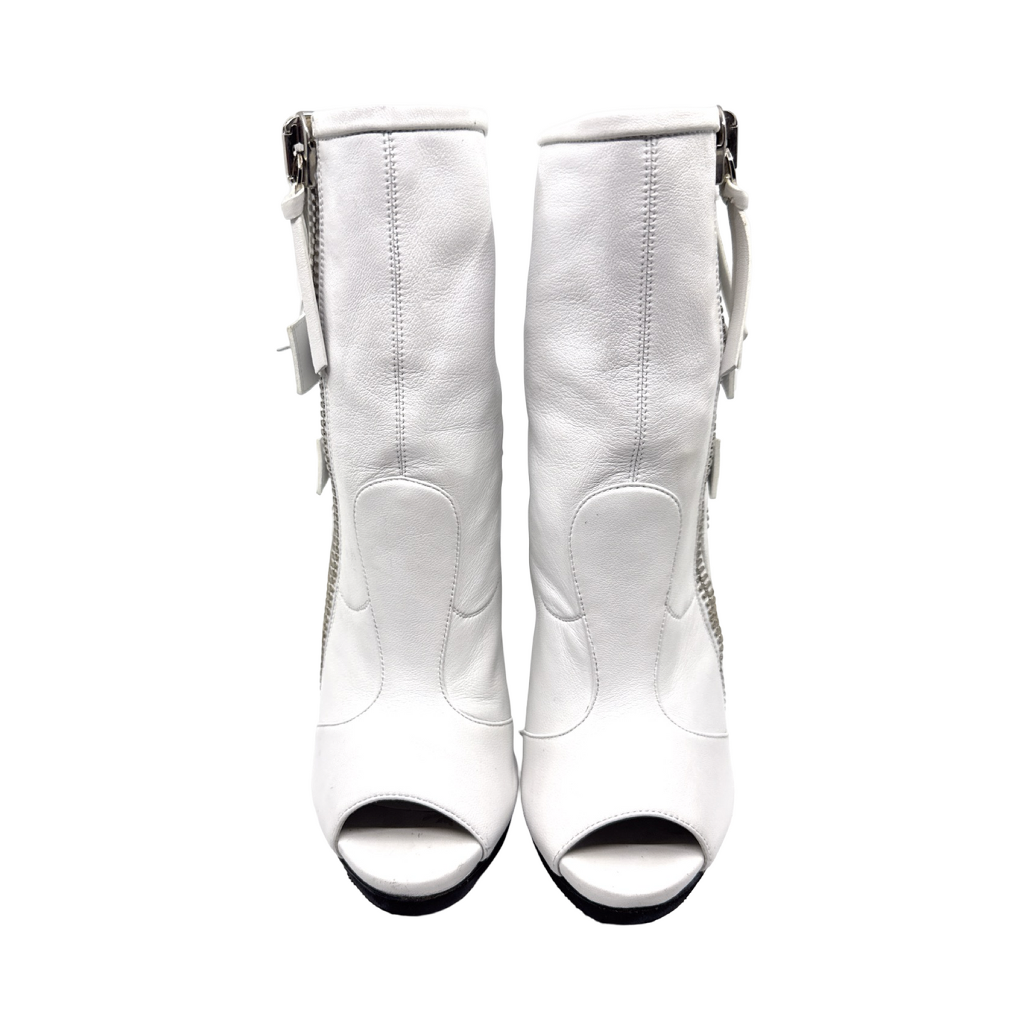 Zanotti white leather zipper peep toe bootie. In great gently used condition. *for added edge style unzipped with chunky anklet.